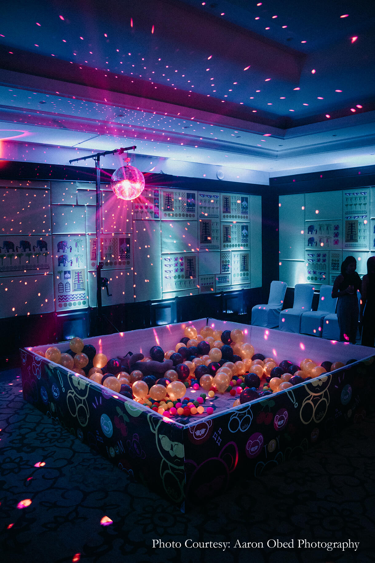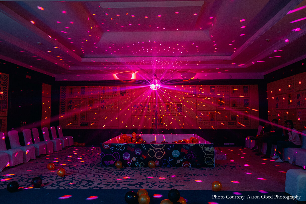 The newlyweds celebrated their love with a Reception dinner on the lawns of the resort which was transformed into a shimmering ocean of stars. Warm lights and flowers filled the occasion with elegance and romance as everyone toasted to their new life. The merriment continued with a Toy Room-themed After Party complete with a ball pool, a teddy bear mascot, funky decor, and more, bringing the wedding to a riveting close.