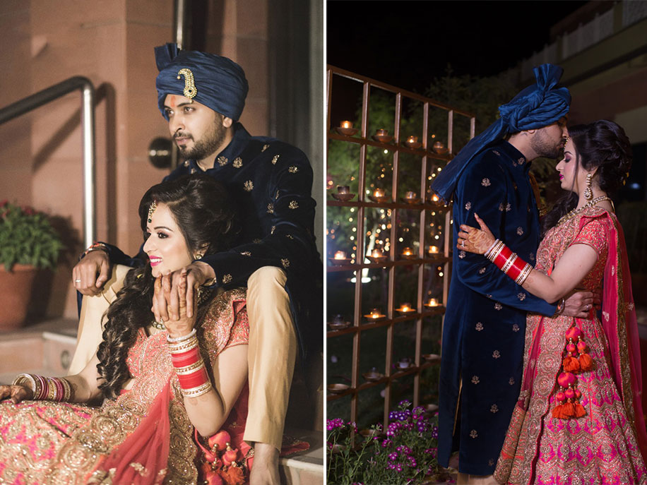“Our two-day wedding celebrations were held at the Heritage Resort in Manesar, Haryana. We wanted our destination wedding to have a holiday vibe without involving too much stress for anyone. We were aware of the quaint surroundings of the resort, and loved its beautiful Rajasthani feel thanks to its regal architecture and lush green lawns. All our functions were held on different lawns.”