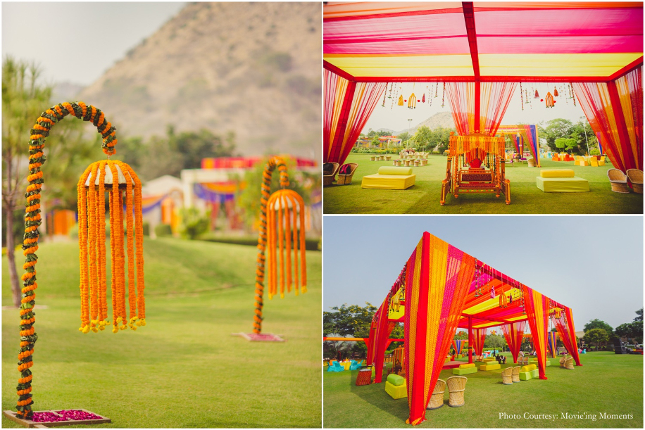 Venues: Holiday Inn Jaipur City Centre (Mehndi and Sangeet), Kabra Farm (Rajasthani Carnival), Taj Jai Mahal Palace (Wedding)