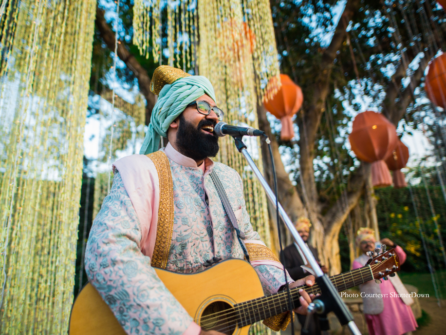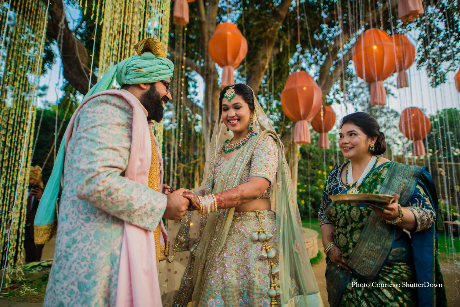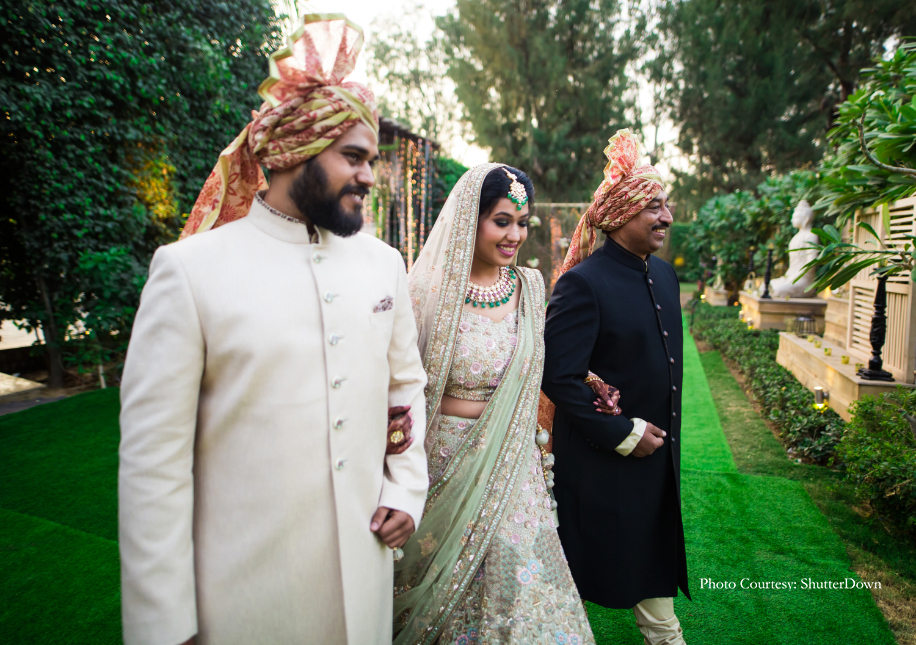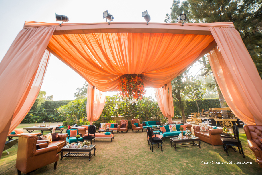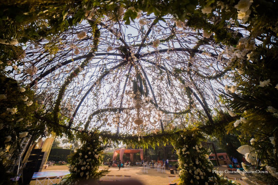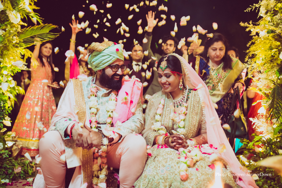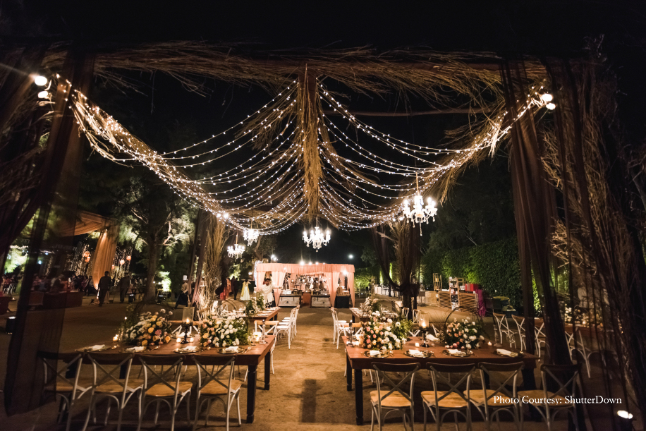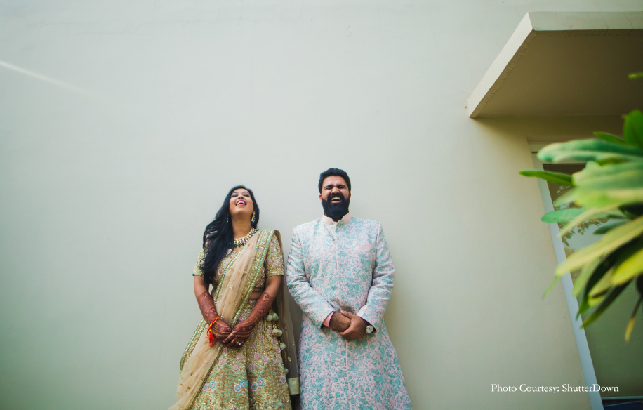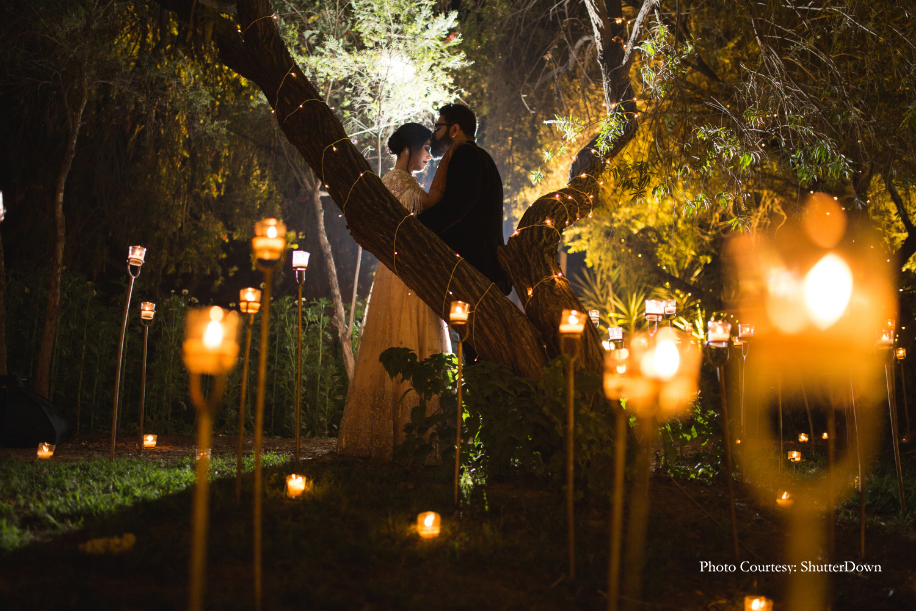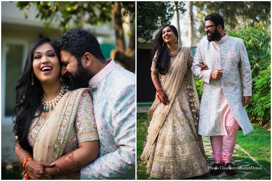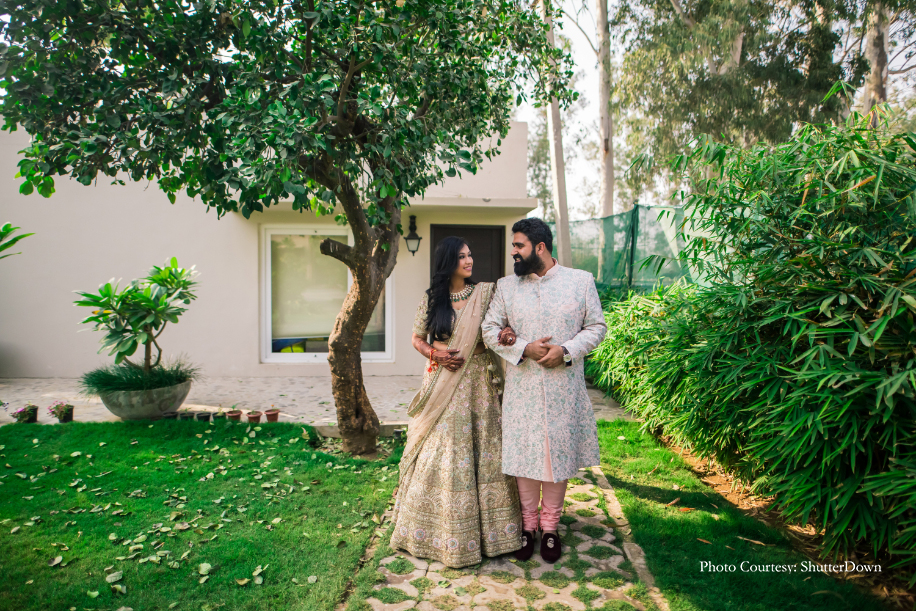 Honoring a love that blossomed from a firm friendship, when a top wedding industry professional gets married, you can expect only the finest. Beautiful weather, top-notch hospitality and stunning décor made this couple’s wedding at Amaara Farms an absolute joy to attend. Founder of the renowned wedding photography company ShutterDown, Lakshya knew exactly what he wanted and ensured that his big day was captured fabulously. Niharika shares with us highlights of their wedding celebrations and pictures shot by the talented team of WeddingSutra Favorite – ShutterDown.