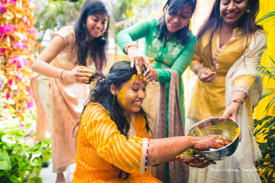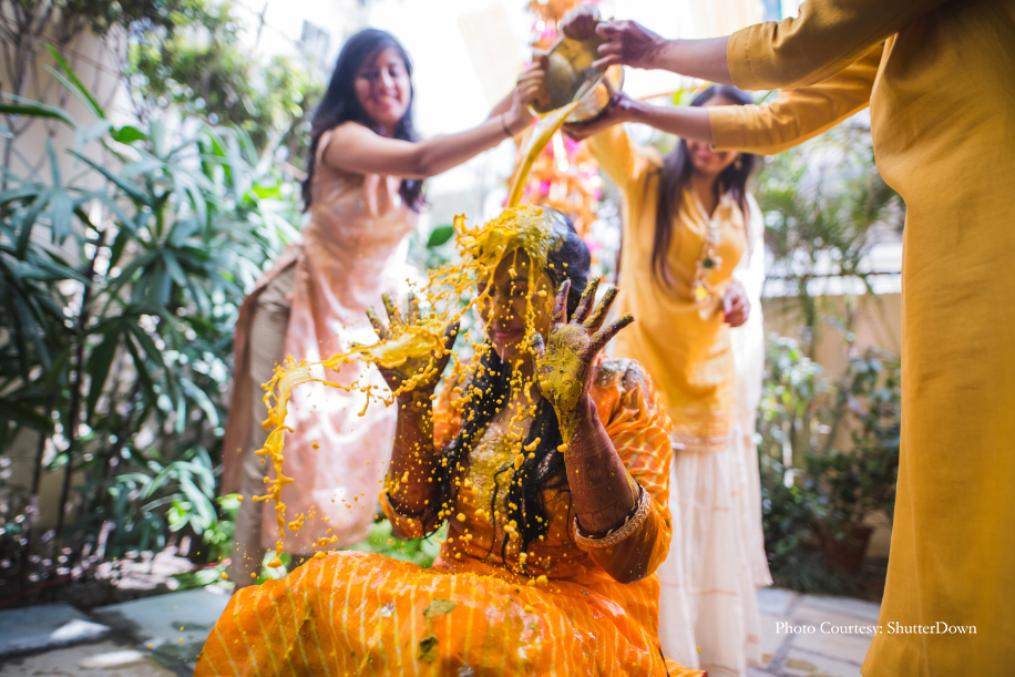“This was one of the most fun functions. Our loved ones ensured they smeared haldi all over our limbs and faces and they had a blast doing that!”