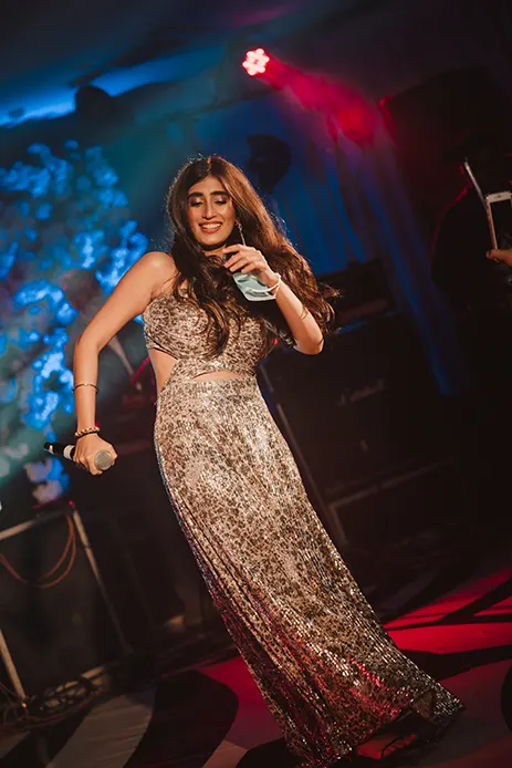 Mahek shares, “The Sangeet night’s decor followed a winter wonderland theme. Both of us entered to sparkling cold pyros held aloft by our families. Furthermore, a harp player played blissful tunes to welcome us. But the highlight of the evening was our families’ performances which were then followed by peppy tunes crafted by DJ AJ. Akasa sang her signature song ‘Nagin’ for our Sangeet and my mom and Jai danced to the beats of the song and everyone else stopped for a while to witness them performing.”