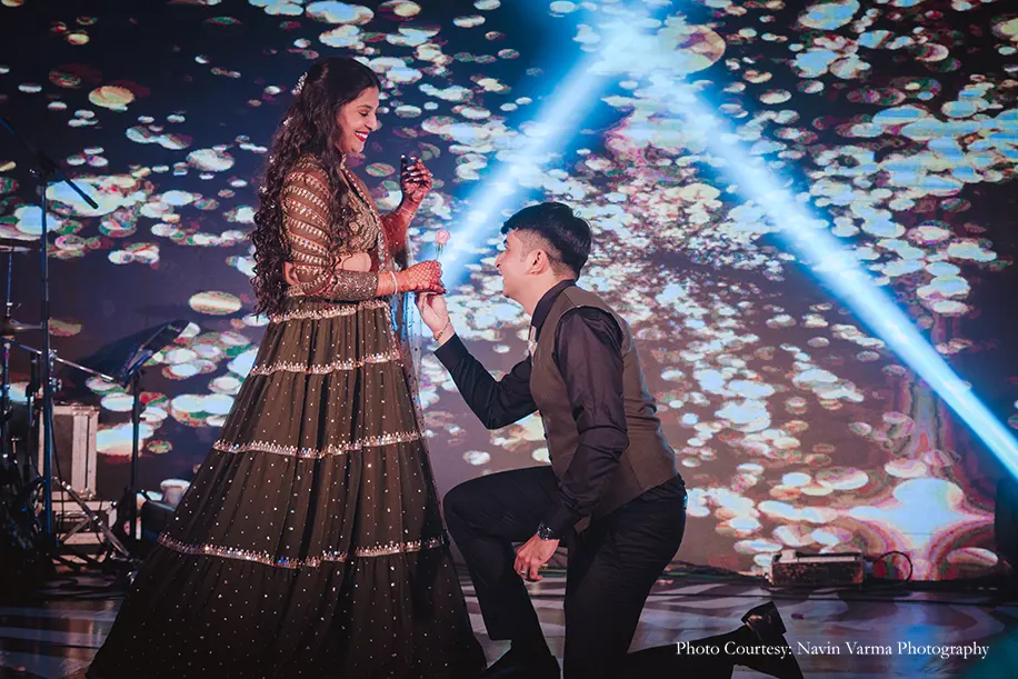 Mahek shares, “Around the end of 2019 Jai and I were close to completing seven years together and we both knew that marriage was on the cards. I wasn’t expecting a proposal but Jai had different plans in mind. On 20th November 2019, Jai picked me up with a bouquet of flowers and took me out for our anniversary dinner. He’d organized a beautiful private dinner for us at a luxurious hotel and while we feasted on delicious treats, he popped the big question on one knee!”