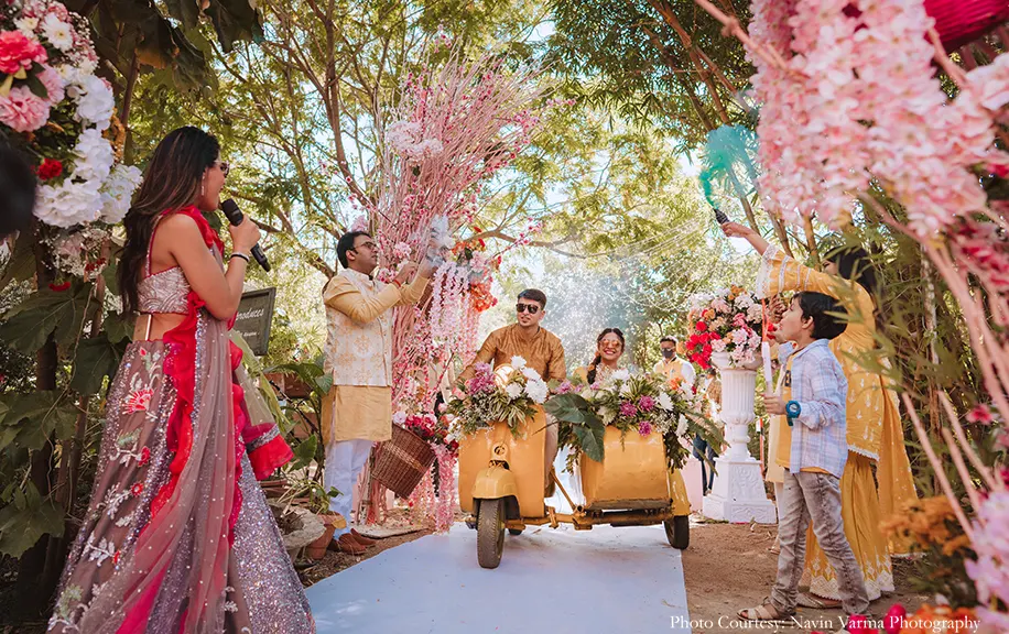 “The Haldi decor was a mix of traditional yellow and bohemian elements. For the entertainment, we roped in an illusion artist who left our guests spellbound. As the event unfurled, our emcee came up with interesting games which kept all the guests engaged!”, shares Mahek.