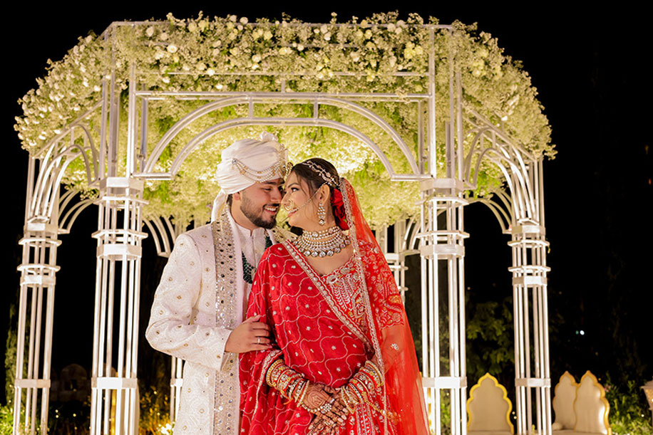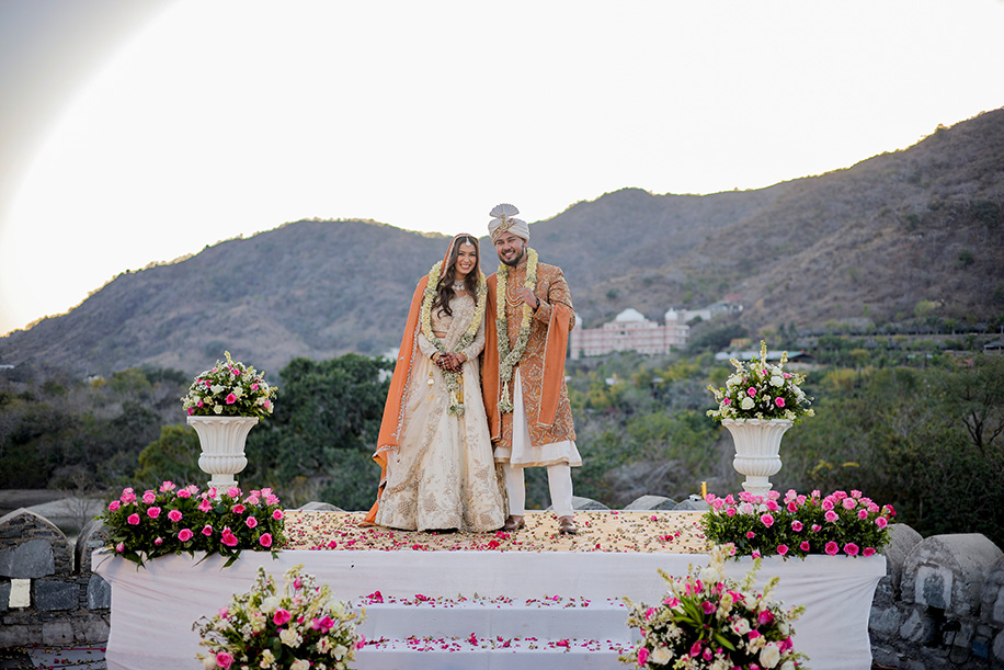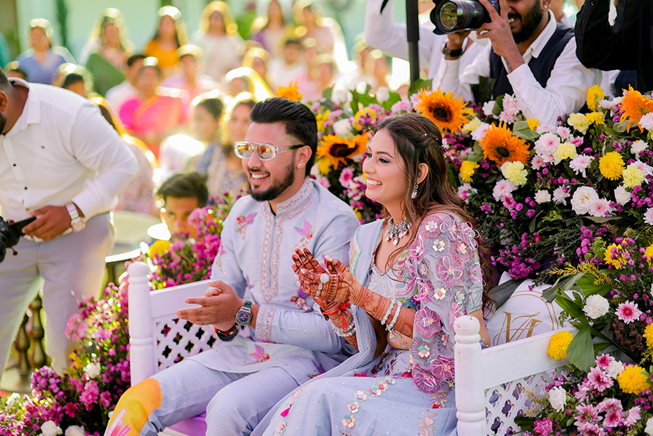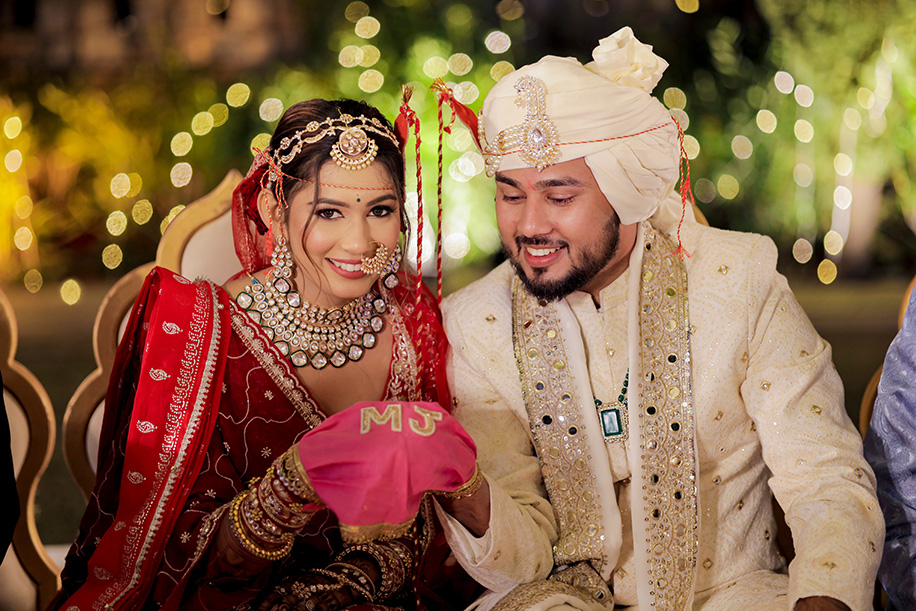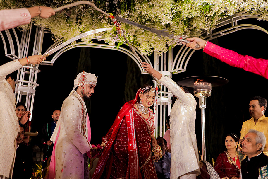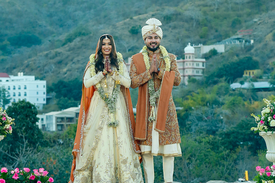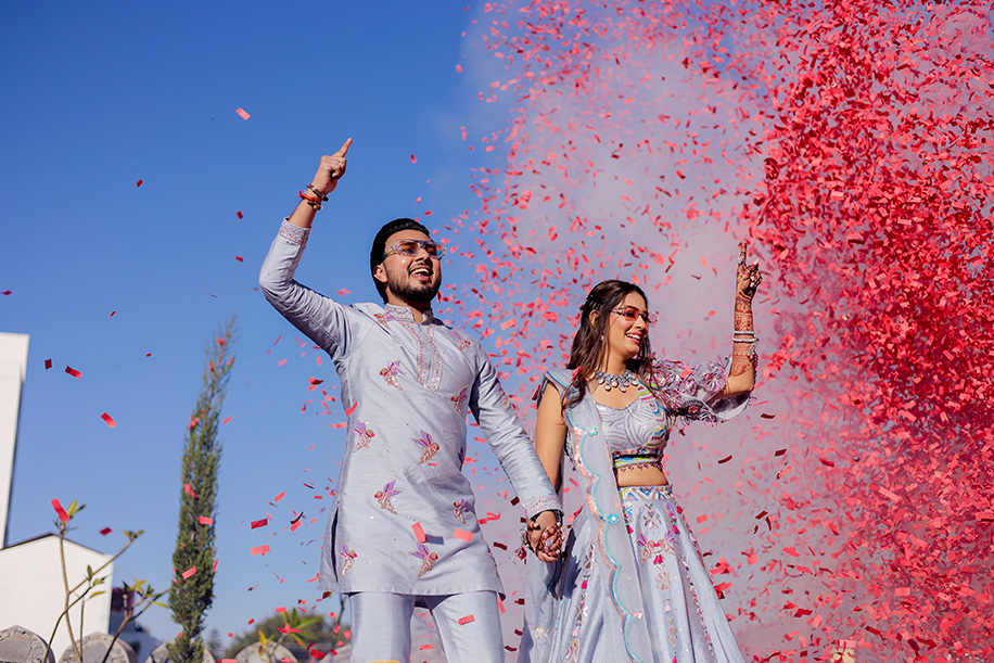 Mahi shares, “For the baraat, we had a personalized DJ van with a large signage saying ‘Jay Ki Baraat’. The ‘baraat swagat’ included flower garlands, coconut water, sweets, and silver coins. As Jay entered the venue, I surprised him by showering petals from a bridge, creating a unique and heartfelt welcome.” Jay adds, “The varmala ceremony was planned for sunset. I entered with my mom and Mahi stunned everyone with her graceful dance performance which also doubled up as her entrance. The varmala exchange felt like a dreamy sequence of a fairytale! The fireworks lit up the sky bringing the celebrations to a glamorous end.”
