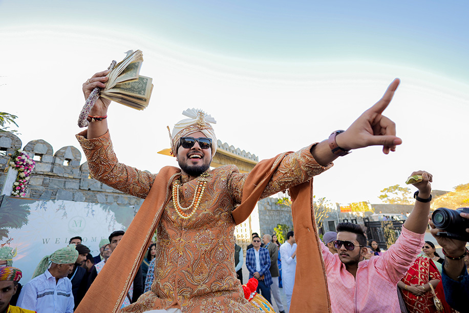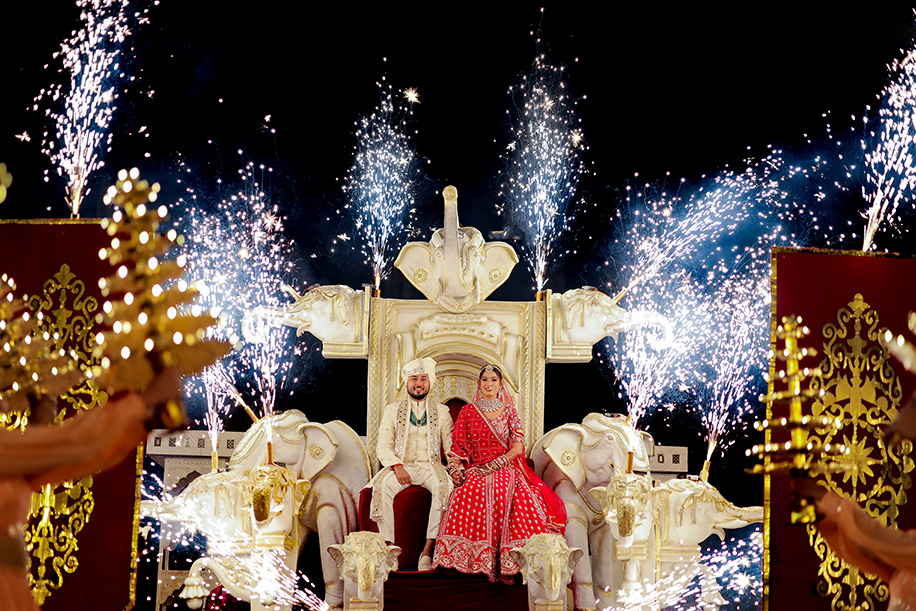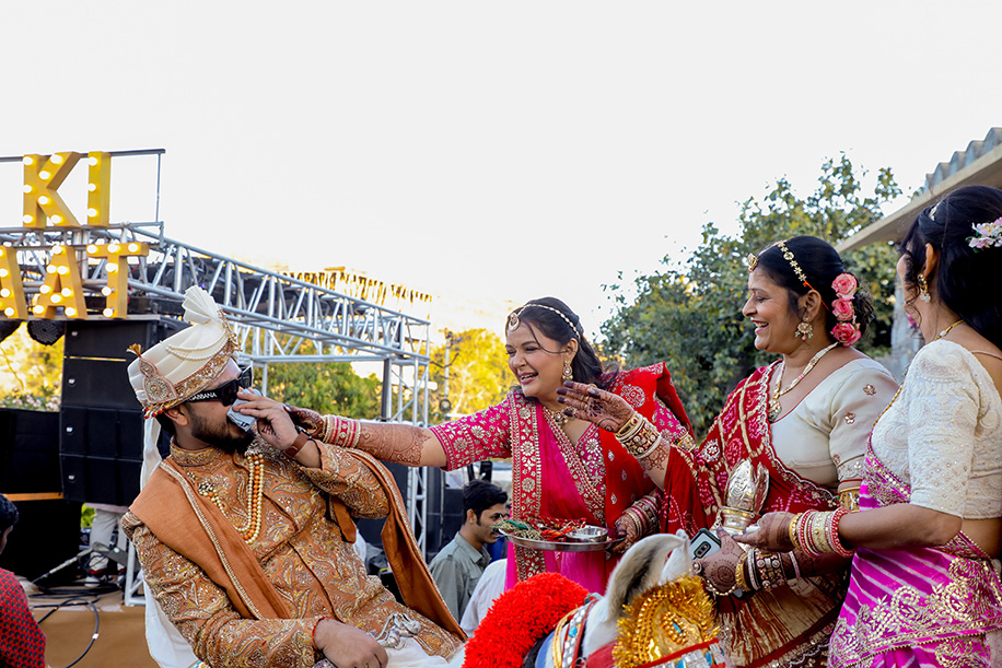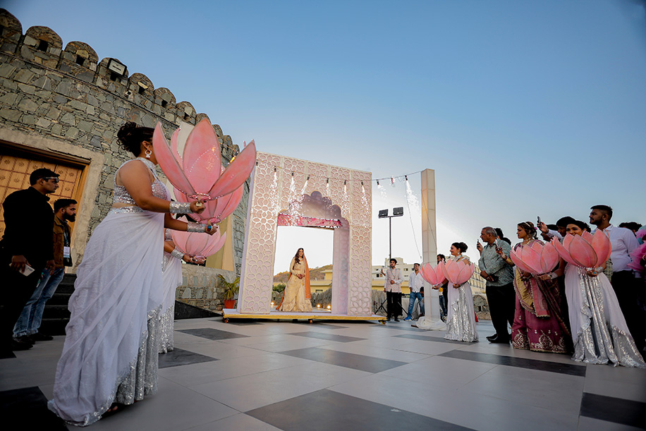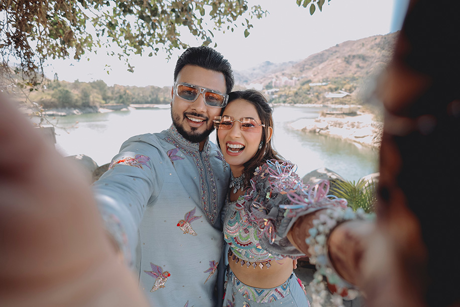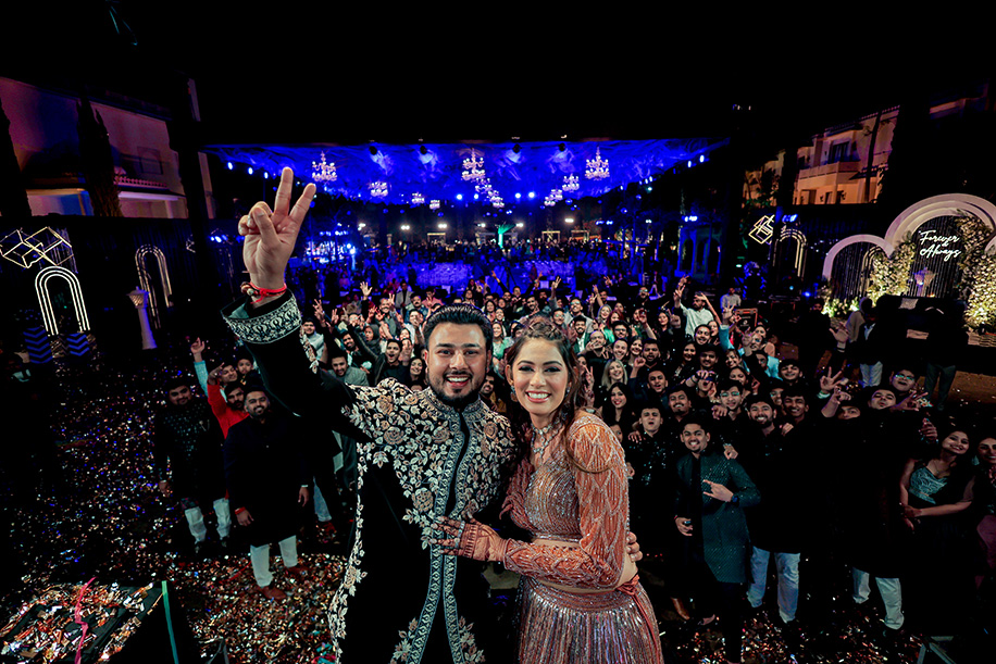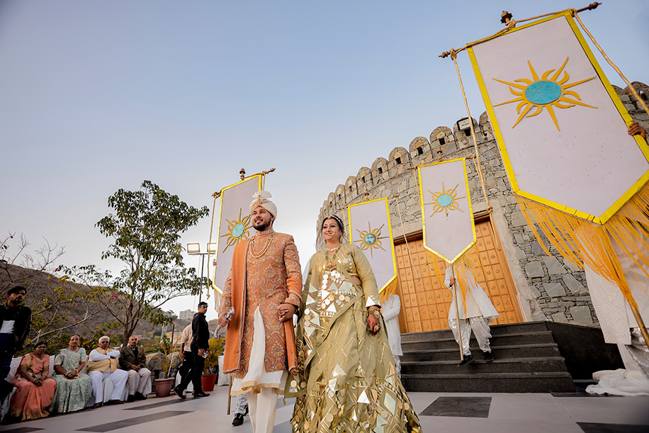 Mahi shares, “For the baraat, we had a personalized DJ van with a large signage saying ‘Jay Ki Baraat’. The ‘baraat swagat’ included flower garlands, coconut water, sweets, and silver coins. As Jay entered the venue, I surprised him by showering petals from a bridge, creating a unique and heartfelt welcome.” Jay adds, “The varmala ceremony was planned for sunset. I entered with my mom and Mahi stunned everyone with her graceful dance performance which also doubled up as her entrance. The varmala exchange felt like a dreamy sequence of a fairytale! The fireworks lit up the sky bringing the celebrations to a glamorous end.”