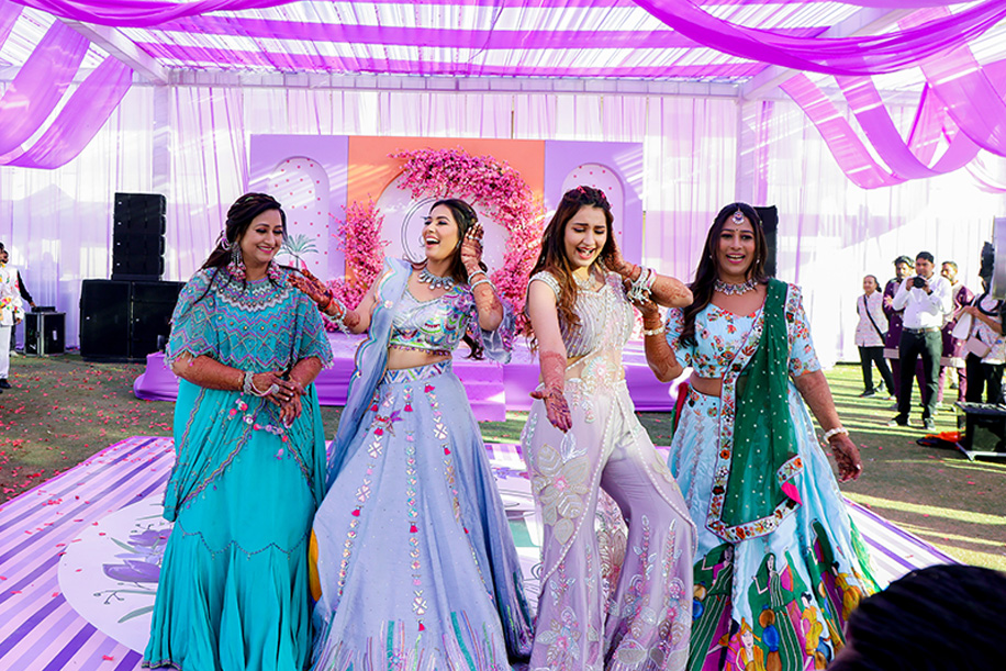 Mahi recollects, “Our Sangeet night was a spectacular hit. From our grand entry to the unveiling of portraits on umbrellas, the evening was filled with excitement. We played some cool games with Anchor JK, and the night culminated in a grand performance by Gurdeep Mehendi, adding an extra sparkle to our Sangeet.”