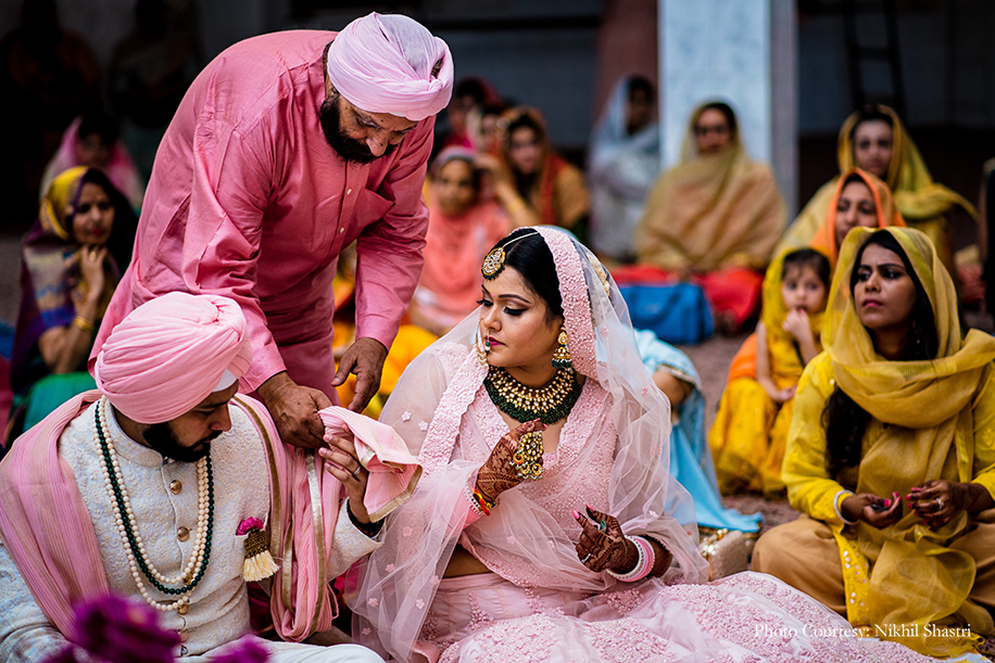 After the fun and frivolity of the days prior, the wedding day dawned with a sense of sacred serenity. The Anand Karaj was a tranquil ceremony, its significance accentuated by sophisticated décor in blush with delicate floral accents.