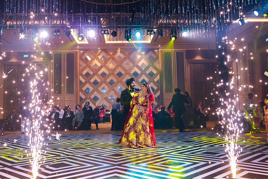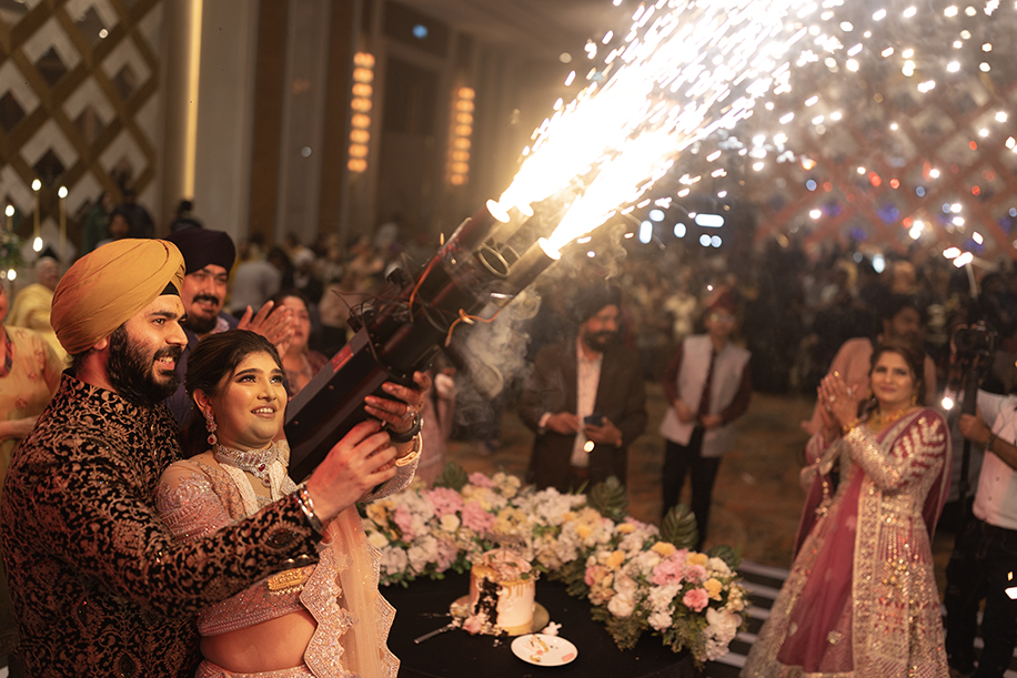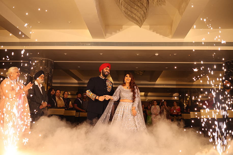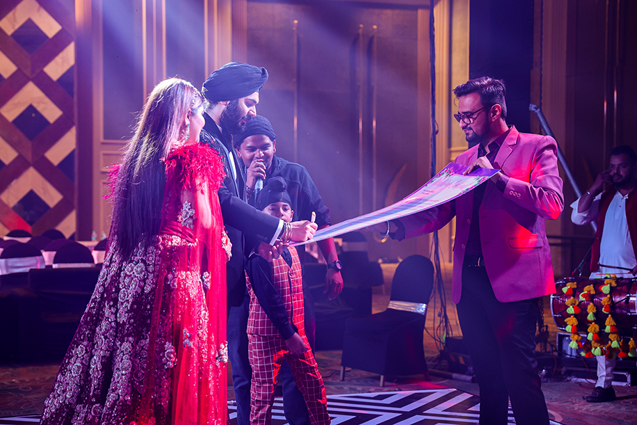 The Sangeet night was nothing short of a grand spectacle. Friends and family put on dazzling performances, celebrating the couple’s love through song and dance. The stage came alive with performances that left the guests in awe and brought smiles to the faces of Mahima and Manjot. The night was a true reflection of the couple’s vibrant spirits and the love they shared. Anshu and Aakash share, “Another surprise awaited the couple, as we planned to have a wedding contract signed before the actual wedding! Lilac Moon on behalf of Mahima penned down seven notorious yet funny wishes that Manjot has to agree to and sign the contract. It was indeed a fun element which left everyone stunned!”