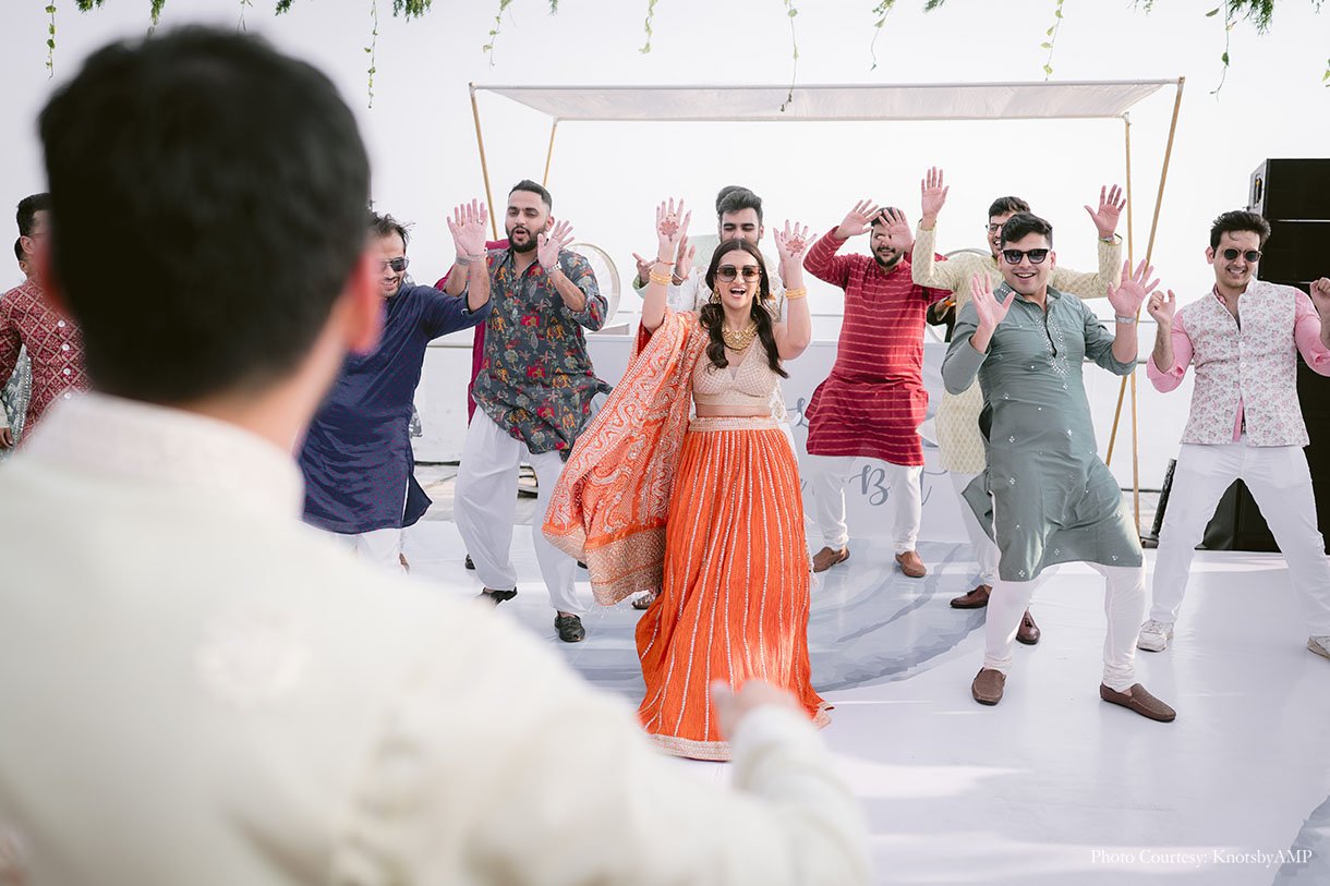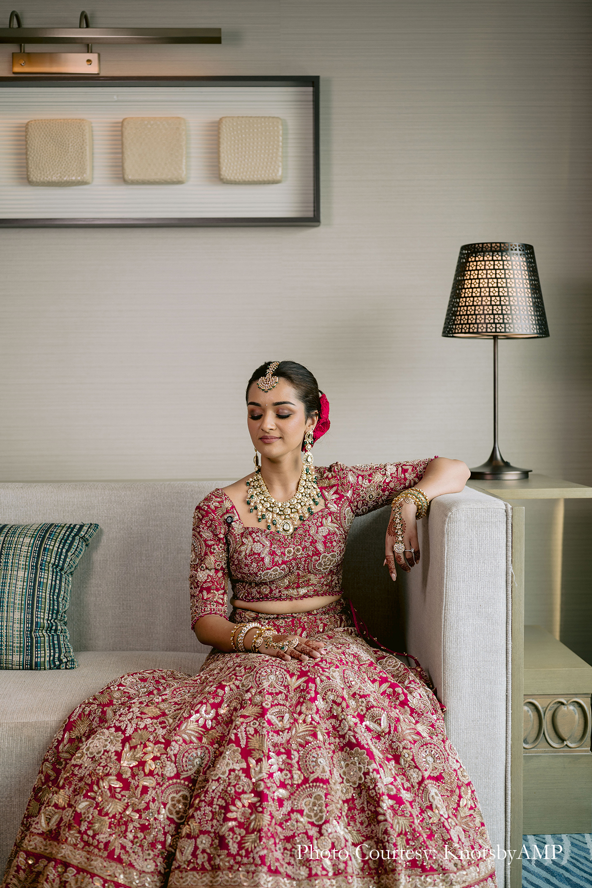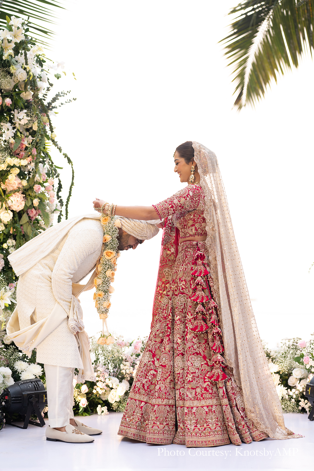 Photographing the couple as they took the plunge was KnotsbyAMP, who impressed the duo with their photography skills. Maitri and Aneesh share, “ Working with the photography team was an absolute blast! From the get-go, they were super easy to vibe with, and it felt like we were hanging out with old friends rather than just a team behind the lens. They managed to capture all the special moments—big and small—most beautifully. The team made us feel so comfortable and natural, and even when we were in the middle of a chaotic moment, they were right there, capturing the joy and the laughter. Their creativity was off the charts, and they didn’t just take pictures—they told our story. They were super attentive to every detail, from getting the perfect angle to making sure no moment was missed, all while keeping the vibe light and fun. We even got a few behind-the-scenes shots of the candid moments that are now some of our favorite memories. One of the highlights was when they took us to the beach for some stunning shots. We couldn’t have asked for a better team to document our day!”