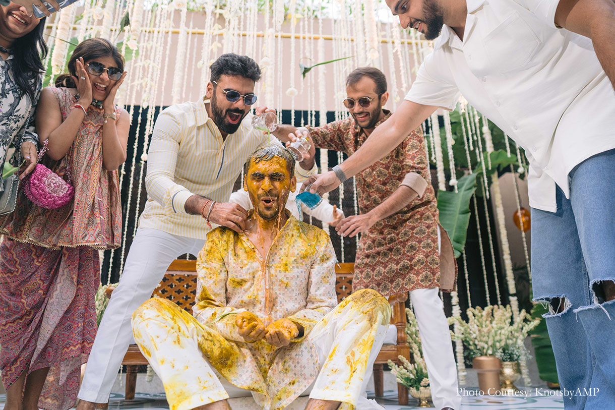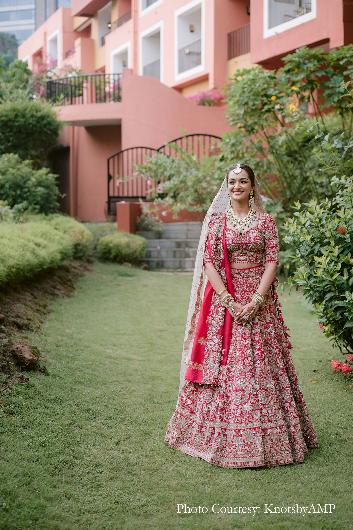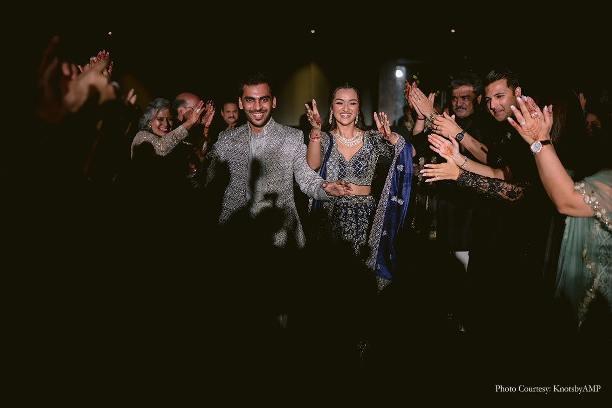 Photographing the couple as they took the plunge was KnotsbyAMP, who impressed the duo with their photography skills. Maitri and Aneesh share, “ Working with the photography team was an absolute blast! From the get-go, they were super easy to vibe with, and it felt like we were hanging out with old friends rather than just a team behind the lens. They managed to capture all the special moments—big and small—most beautifully. The team made us feel so comfortable and natural, and even when we were in the middle of a chaotic moment, they were right there, capturing the joy and the laughter. Their creativity was off the charts, and they didn’t just take pictures—they told our story. They were super attentive to every detail, from getting the perfect angle to making sure no moment was missed, all while keeping the vibe light and fun. We even got a few behind-the-scenes shots of the candid moments that are now some of our favorite memories. One of the highlights was when they took us to the beach for some stunning shots. We couldn’t have asked for a better team to document our day!”