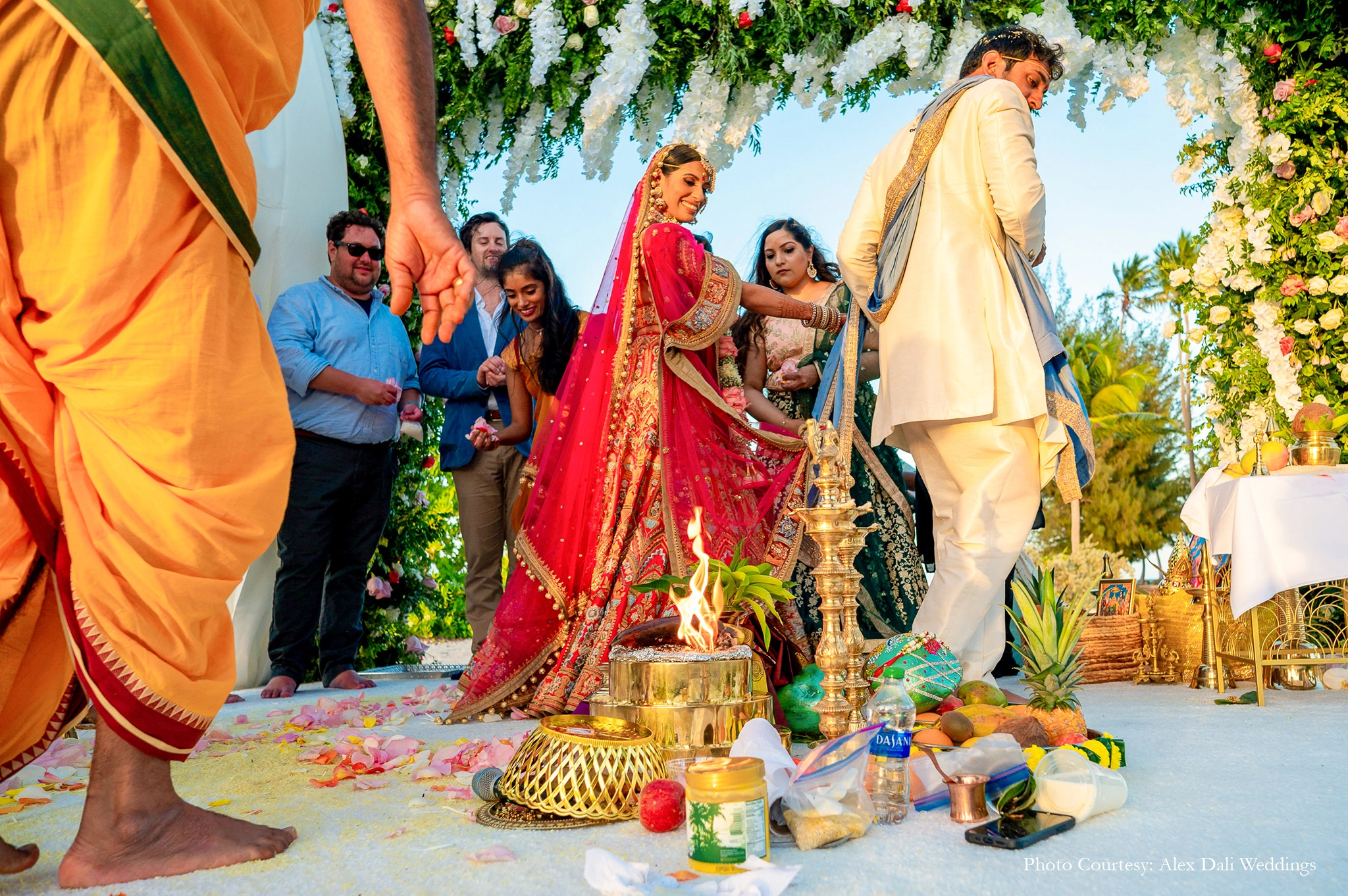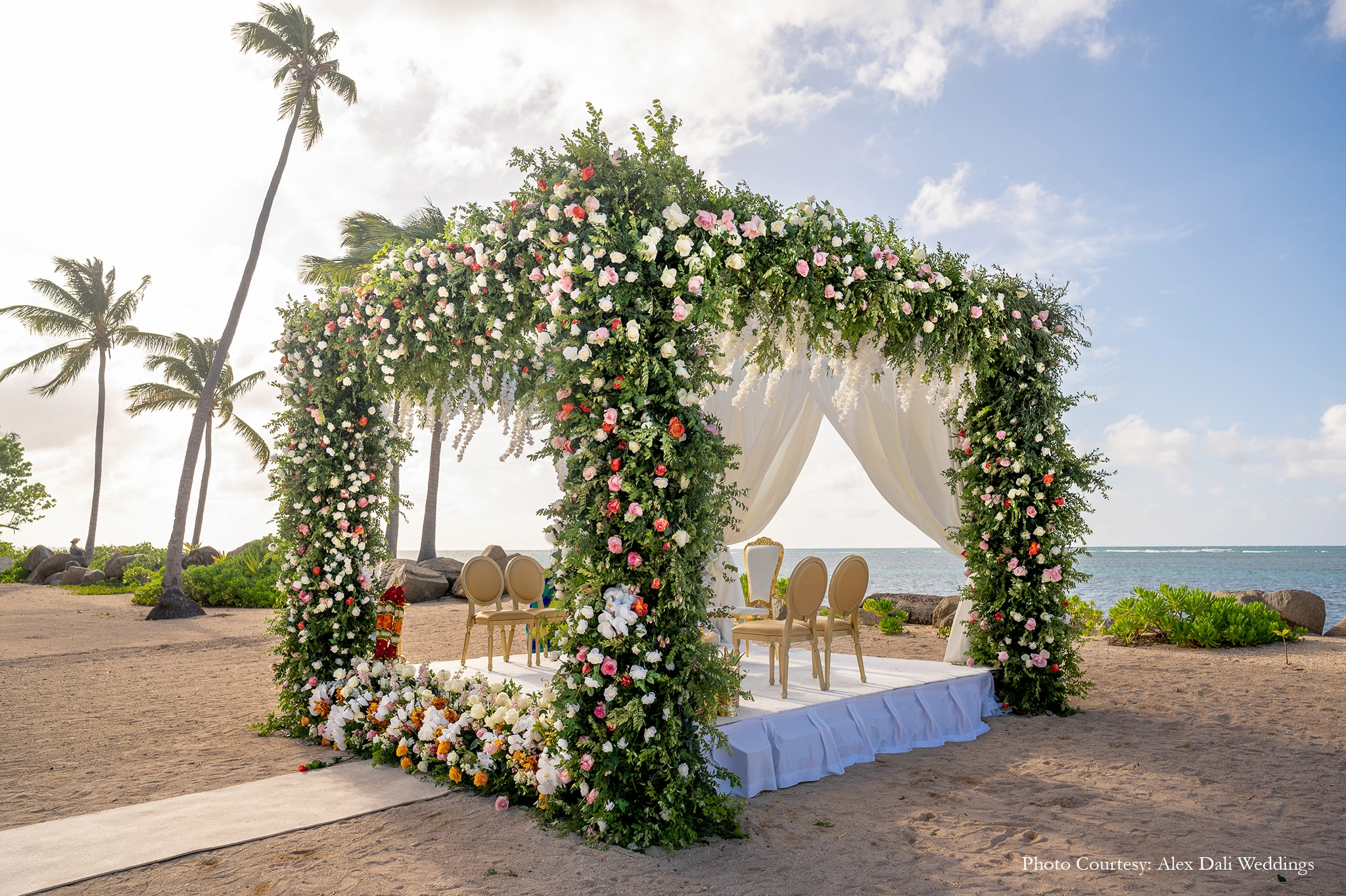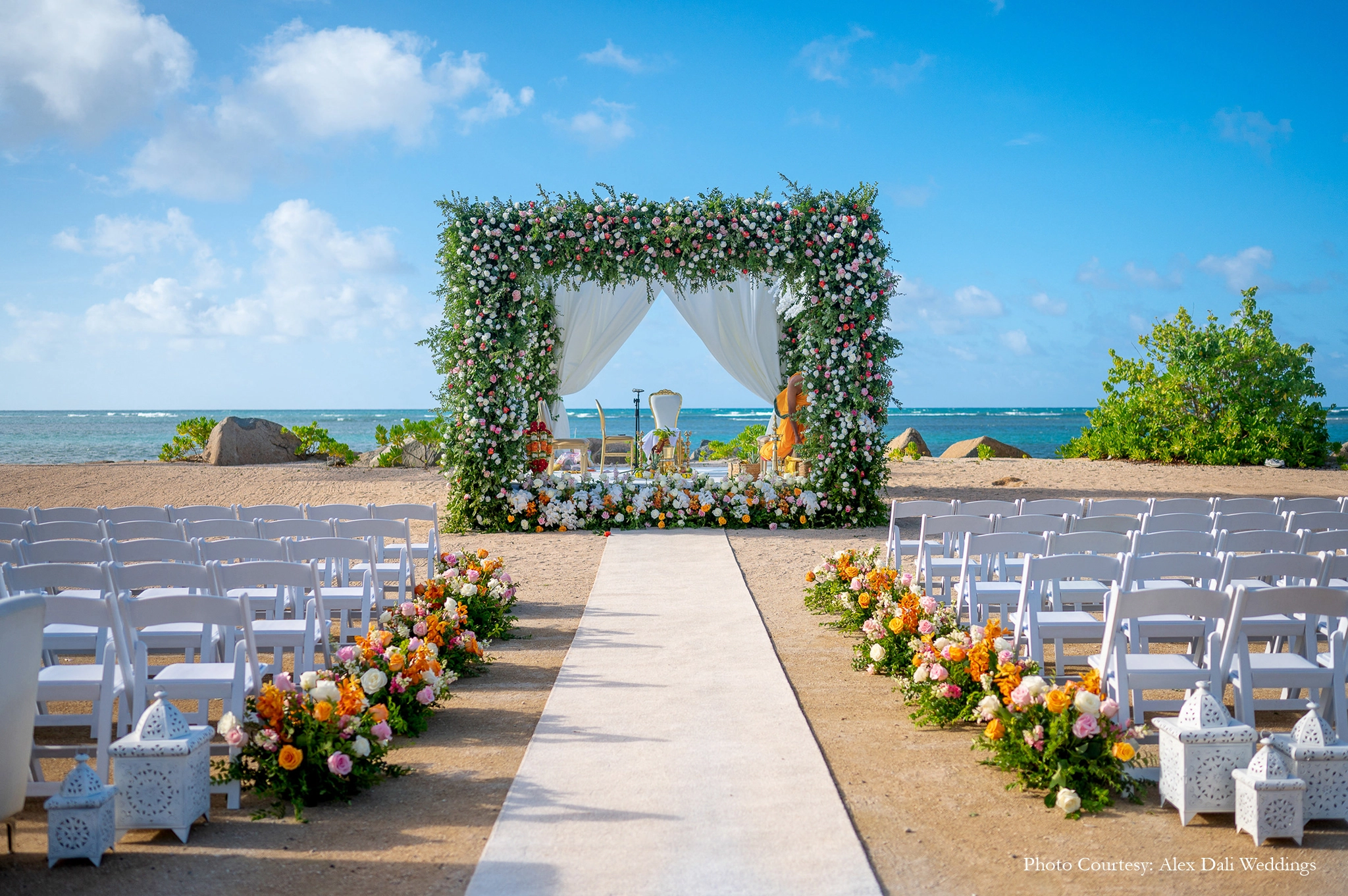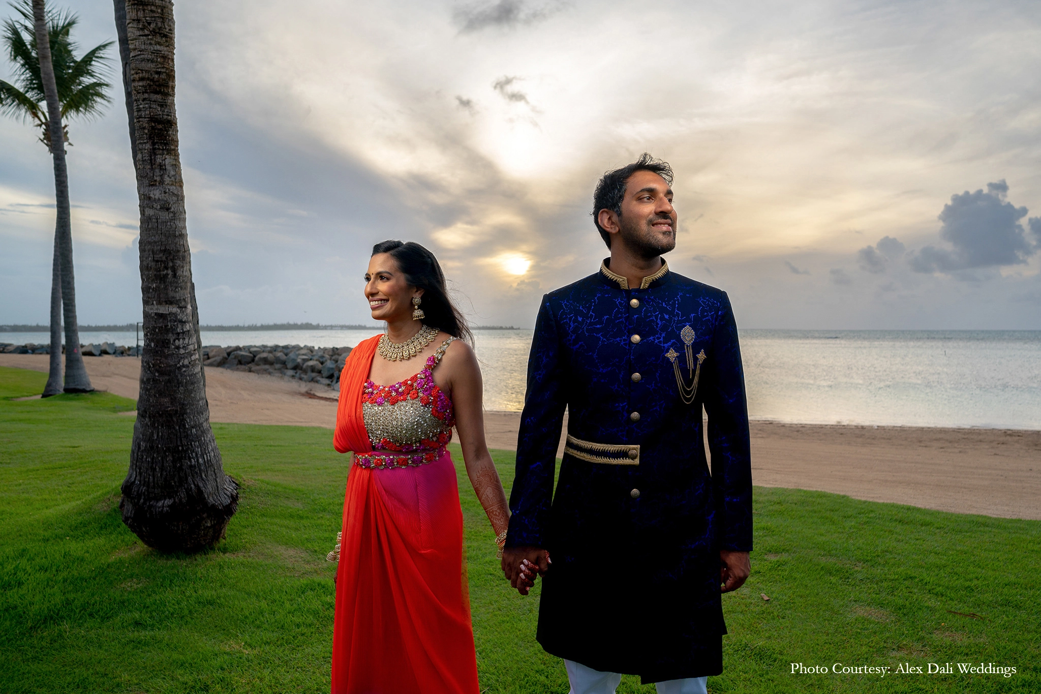 Brimming with vivid colors and customs, Malary and Kishore’s wedding bonanza in Puerto Rico painted a beautiful portrait of their love and heritage. Hosted in the picturesque town of Rio Grande, their celebrations were captured in vibrant shots by WeddingSutra Favorite – Alex Dali Weddings.