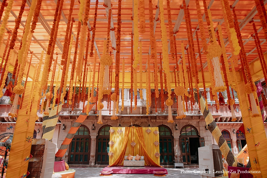 Featuring traditional designs that were artfully merged with contemporary styles, Mallika Nayar, co-founder of The Brand Daily Project’s destination wedding with Varun Kapoor, a Chartered Accountant was a profusion of colours and heartwarming moments. Photographing their wedding was WeddingSutra Favorite – LensEyeZia Productions who with their expertise and precise timing captured moments of unfiltered happiness.
