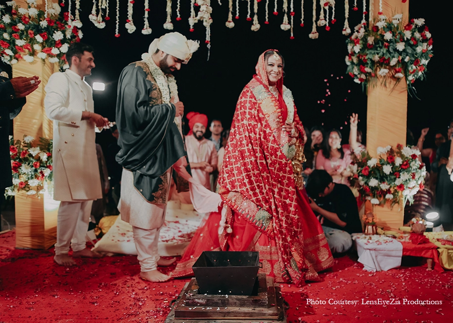 A wedding bestows one with precious moments that last a lifetime. And, to ensure that each moment of their union was beautifully captured, the couple entrusted the wedding photography to LensEyeZia Productions who awed the duo with their skills. Mallika shares, “Choosing LensEyeZia Productions was the best decision we made at our wedding. They captured each moment thoroughly be it late at night or during the early hours of the morning. The pictures looked absolutely gorgeous and the videos so aptly captured the vibes of each event. All our friends and family were equally included, no one was left out! The team was energetic throughout the wedding and it almost felt like they were our friends since they made us feel so comfortable.”