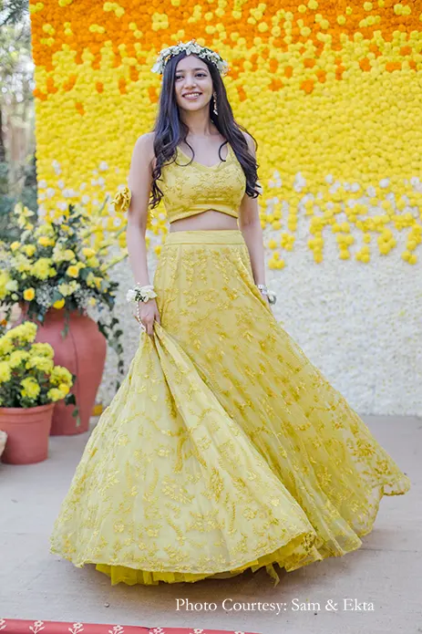 Bride’s Outfits: Astha Narang (Haldi), Jade by Monica and Karishma (Mehndi, Sangeet), Anita Dongre (Wedding)