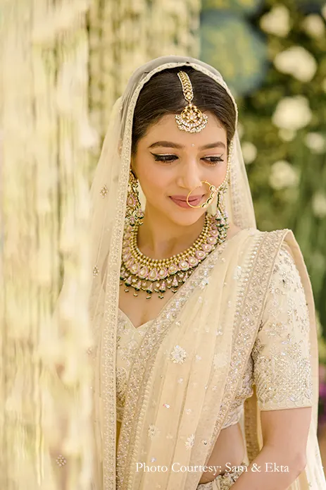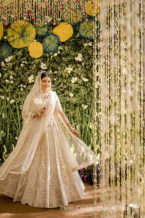 Dressed in an ivory lehenga with silver embroidery, this bride was the epitome of elegance as she tied the knot with her beau.