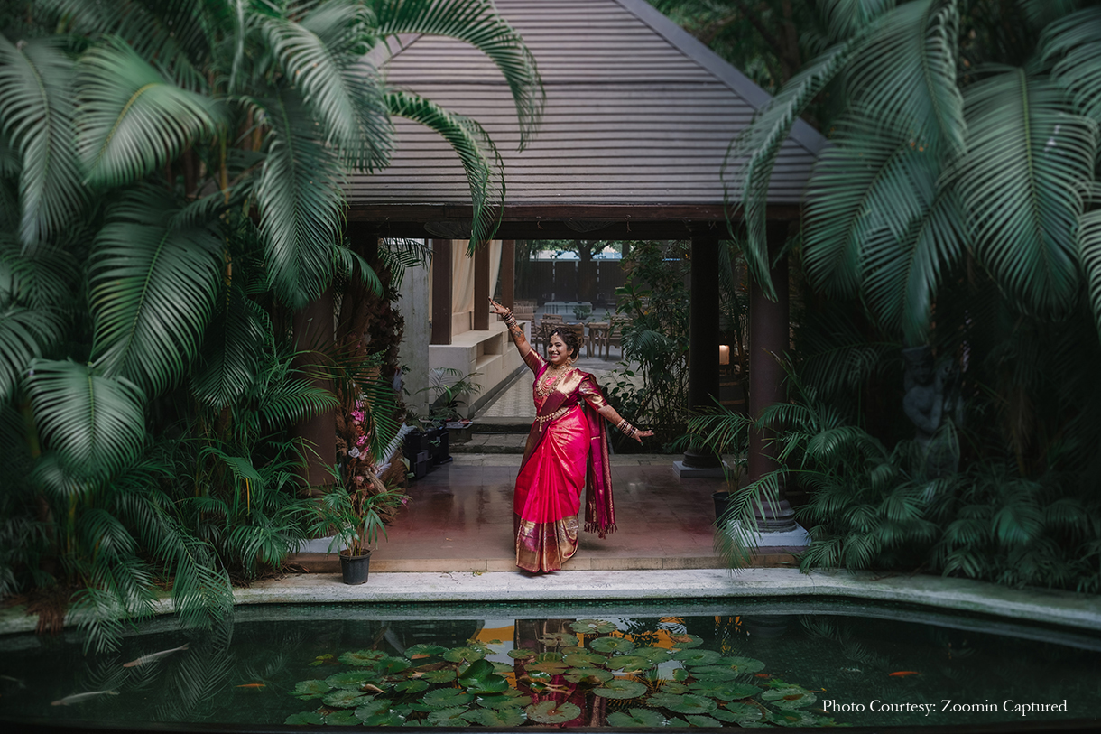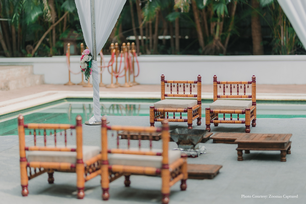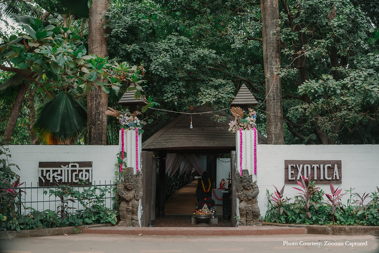 For their wedding, Manasi and Keshav envisioned a venue that reflected their shared love for nature and minimalism. They found their dream setting at Exotica Retreat in Yeoor Hills, a sanctuary nestled amidst lush greenery, far from the city’s relentless buzz. Every element of their wedding was handpicked by the couple, a labor of love that required immense effort but yielded an event as unique as their love story. They collaborated with a team of passionate professionals who brought their vision to life. Durgesh Parab of Zoomin Captured was entrusted with the task of immortalizing the day’s candid moments. His team seamlessly blended into the background, capturing the essence of each precious moment without intrusion.