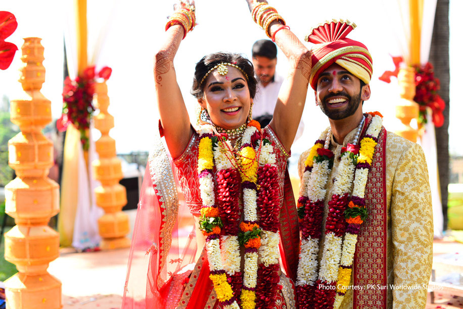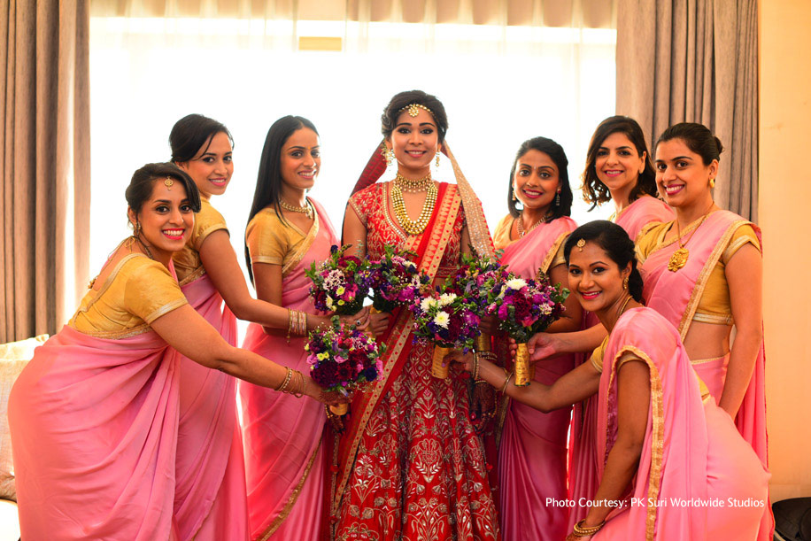 From the fresh floral decor for the wedding to Manisha’s gorgeous bridal looks curated by WeddingSutra Favorite Ojas Rajani, this couple’s wedding at Taj Lands End in Mumbai was resplendent with color, family bonding, and beautiful frames. Here, bride Manisha shares highlights of her nuptials below.