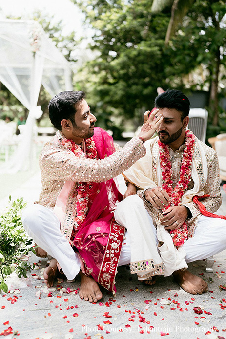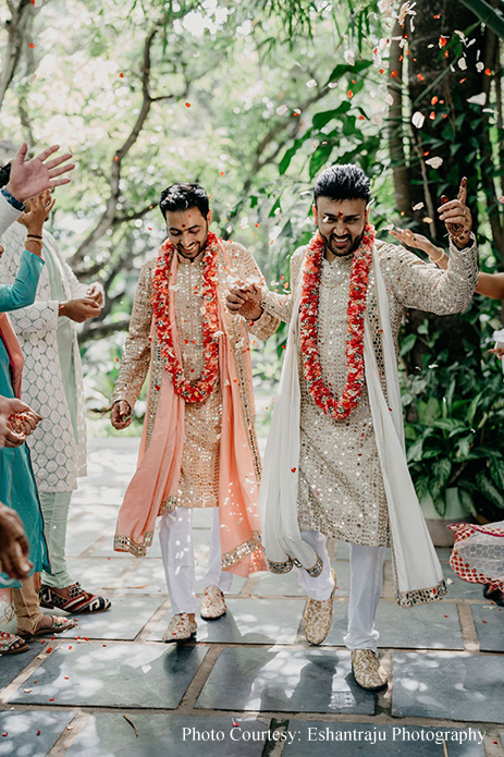 Mayank and Sougata share, “When we started dating we never really thought that we will be able to get married one day leave aside from getting married in front of our parents. And for us, that was the most special thing about our marriage which is to get married in the presence of both our parents and also our immediate relatives and friends. The icing on the cake was the day we chose for our wedding was also the first birthday of our babies! Now they will never be able to complain that they were not invited to their parents’ wedding. We did all the ceremonies, like, cocktail night, mehndi, haldi and then mostly all the rituals of marriage. Our Panditji was also very cool and explained everything in detail.”