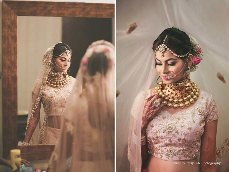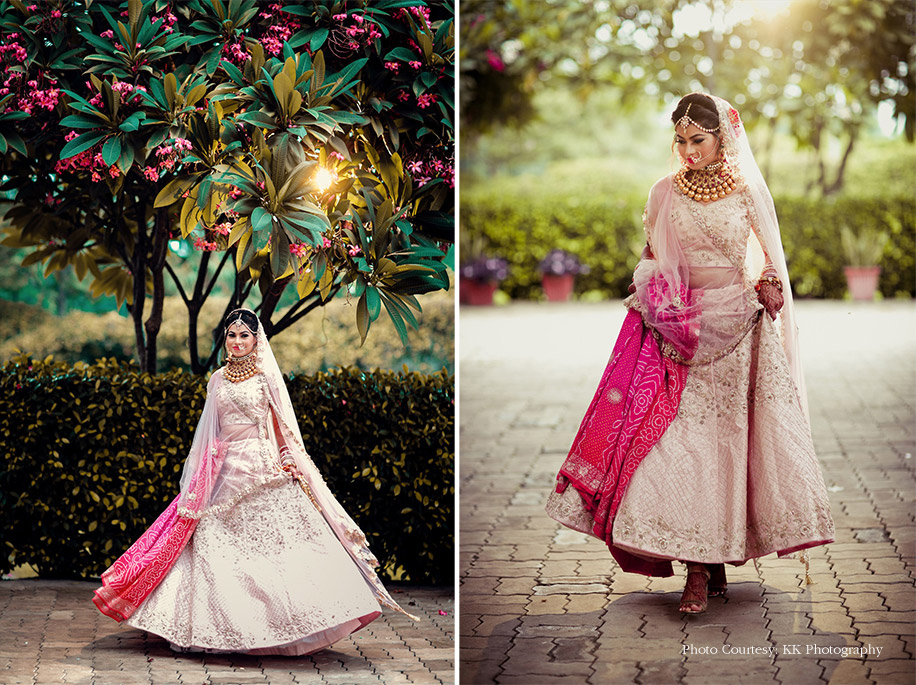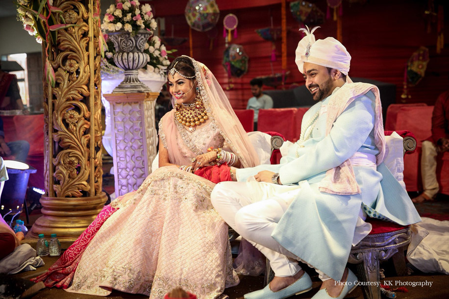 “Our wedding took place on Sidharth’s birthday which falls on July 21. Many teased him about me being his gift for life, and I couldn’t agree more! Everything about the big day was better than my imagination! I’m an ardent fan of pastels, and for the pheras, I insisted on a pink floral mandap to match our attires. I had decided on my wedding lehenga much before our engagement and wore a custom-made blush pink ensemble which I paired with heavy yet intricate jewellery. Dressed in his pale cadet blue sherwani, Sidharth matched my lehenga with his belt and turban.”