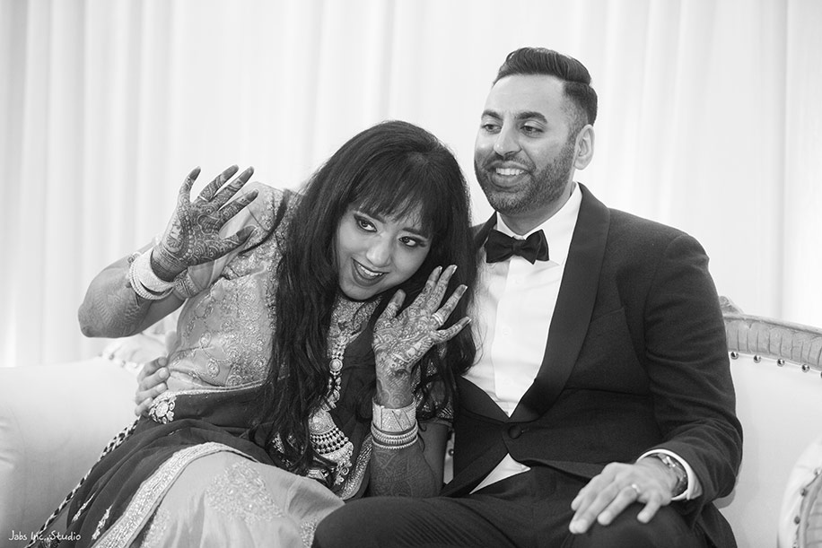 “Harsh and I were in a long-distance relationship once I finished law school and moved back home to New Jersey from Boston. We were both really stressed at work and Harsh planned a weekend getaway for us. He told me to pack my bags and booked me a flight to Boston. Once I landed, we drove up to Vermont and spent our first day visiting some breweries &grubbing on some of the area’s best farm-to-table restaurants.The next day he asked me to get dressed for brunch and said he’d be back in an hour. He returned with a picnic basket and suggested an impromptu picnic overlooking Lake Champlain. It had rained that morning and I kept complaining that the ground would be too wet but he insisted on it. The next few moments would change my life forever. He handed me a wooden corkscrew/bottle opener and asked me to open a bottle of Pellegrino. When I looked at the corkscrew closely, it had the magical words -“Will you marry me Michele?” engraved on it. I was so shocked! Even before I could grasp what was going on, he was down on one knee, with the most beautiful ring in his hand. It was truly the happiest moment of my life.”