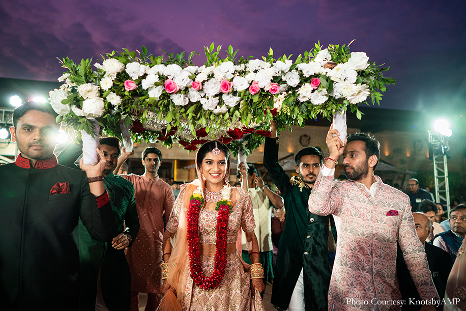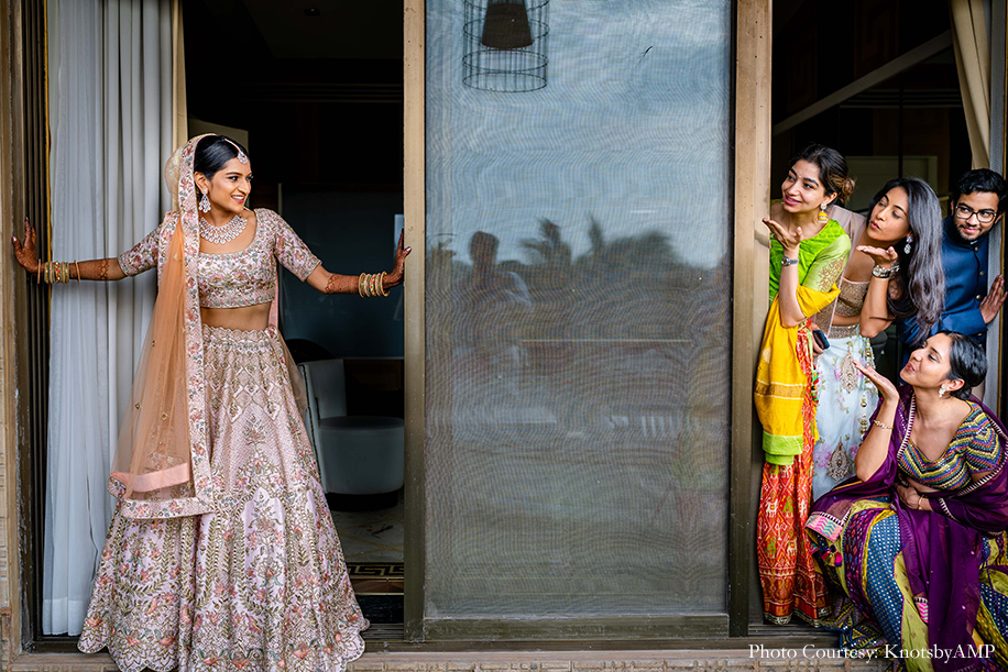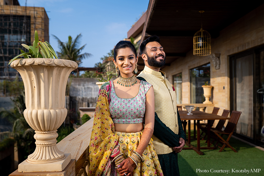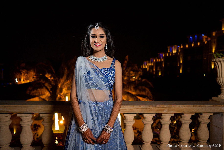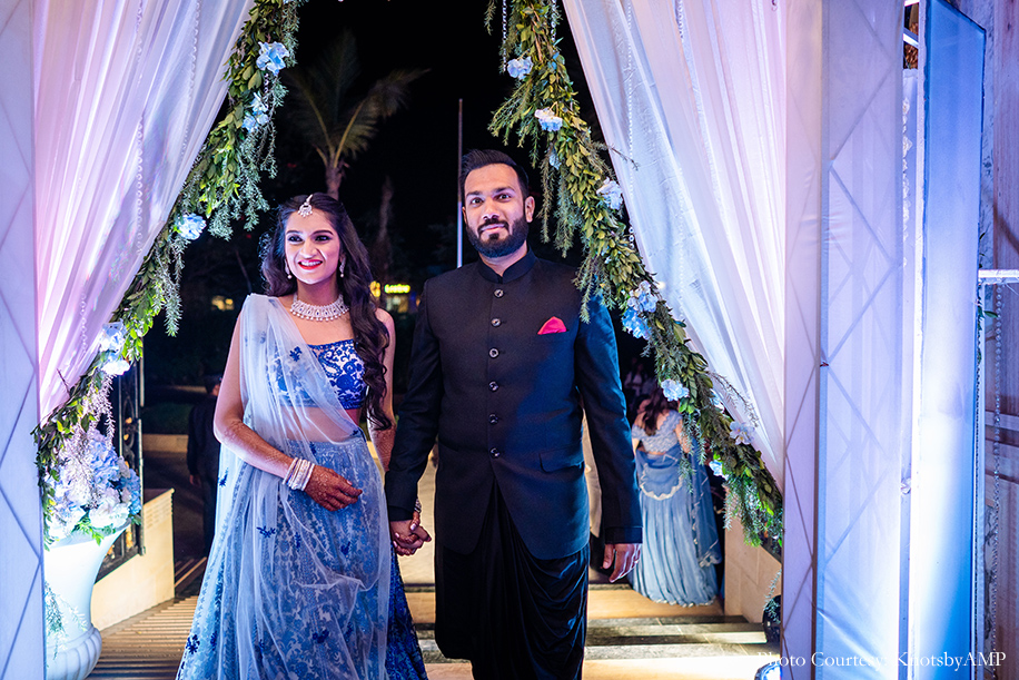 Miloni and Nihar were extremely excited to plan the wedding and divided tasks between themselves. The planning and execution of the functions were entrusted to The Wedding Project while the decor was done by Bhoomi Events. The couple also took on several things completely such as designing the invites, the decor concepts of their wedding, planning the sangeet, and much more. They hired KnotsbyAMP to capture all the special moments of the celebrations. The couple shares, “We enjoyed working with KnotsbyAMP immensely. The team responded to requests in a timely and appropriate manner. It was important that our guests enjoy the functions uninterrupted, and they thoroughly respected that, while capturing the most genuine emotions in their pictures.”