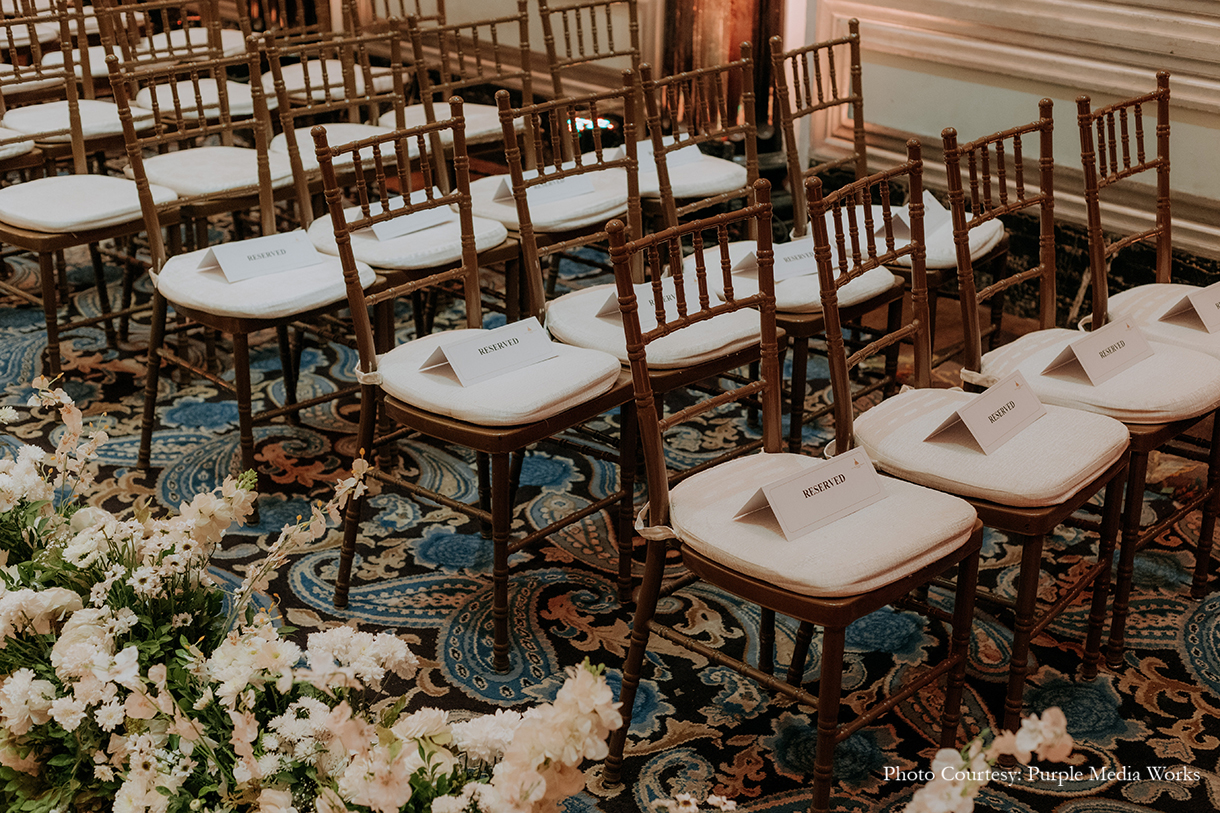 For Misha & Alex, we went beyond the ordinary, creating a wedding that wasn’t just about grandeur but about meaning, emotion, and the perfect balance between cultural authenticity and modern elegance. Personalization was at the heart of this wedding—right from the room hamper bag and its contents, which focused on an Indian touch, to a wedding newspaper that beautifully captured all the wedding details along with fun facts about the couple. Even the return gift boxes and date boxes were customized with the couple’s wedding logo, adding a unique signature to their celebration. This wasn’t just a three-day wedding—it was a seamless blend of two families, two cultures, and two souls, leaving every guest with cherished memories of a love story beautifully told.”