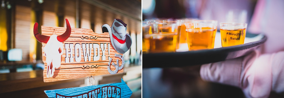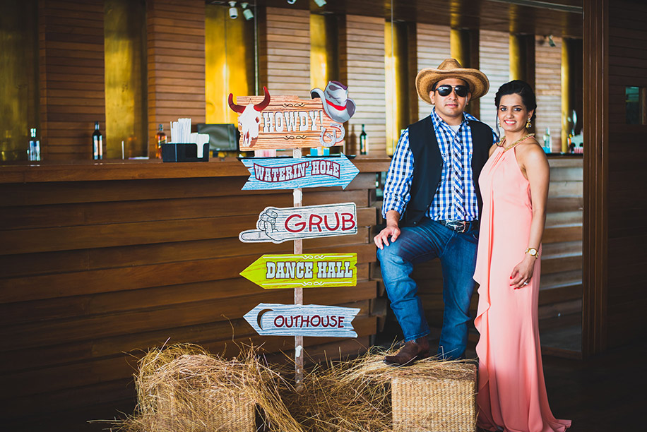 “Our first event was a brunch with a #CowboyRidesToTheBigApple theme and we had quirky signs, bales of hay and wooden crates to create the rugged ambiance. The men came dressed in plaids, while the ladies wore chic outfits. I wore a pink gown and Viraj looked every inch a cowboy in his cowboy hat, jeans and checkered shirt We kicked off with a party for youngsters where there was lots of food, a custom drinks menu and cheery guests shaking a leg to hit tracks. The event started out with a ‘Meet & Greet’ session where we welcomed our friends and then quickly joined them on the dance floor. We all jammed on Bollywood songs, and Viraj was the centre of attraction! Six hours quickly flew by, but we could have continued burning up the dance floor.”