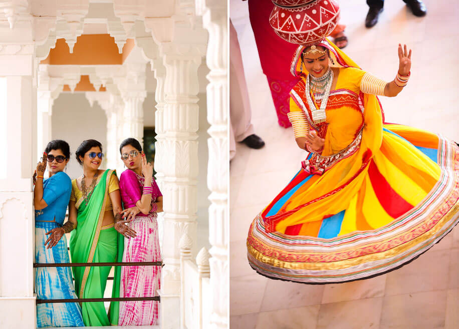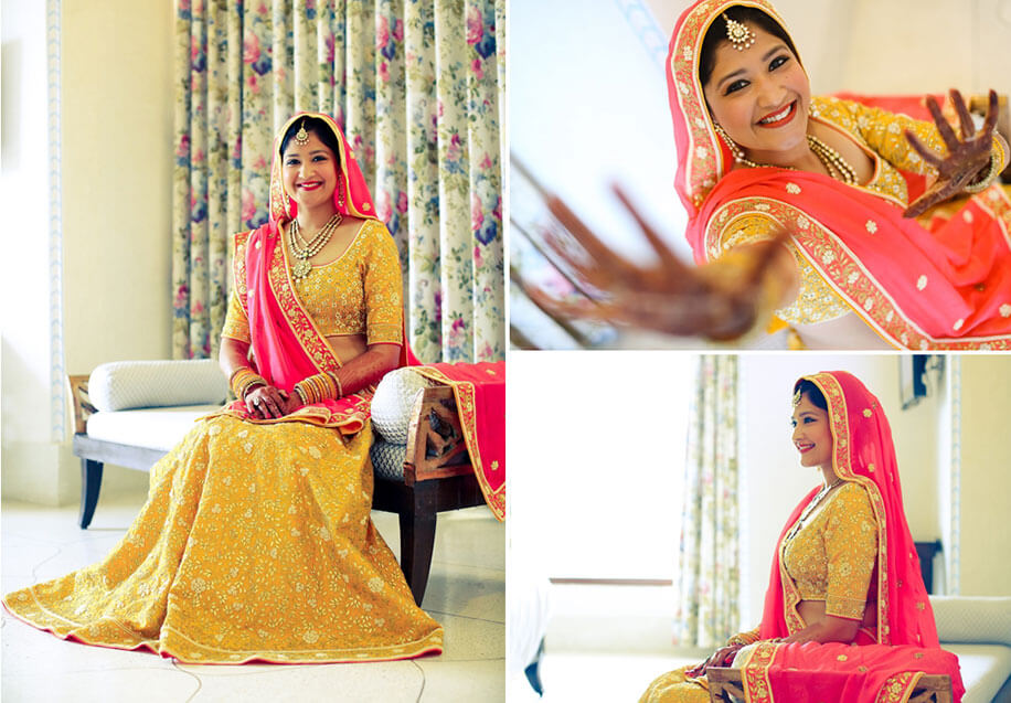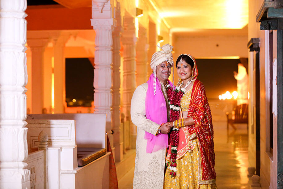 “We were married in a lavish three-day wedding in Rajasthan. Even though my family is from Mumbai, we wanted to have a feel of a ‘destination wedding’ with everyone staying and celebrating together. So we booked the beautiful Hotel Fateh Garh in Udaipur which is a Heritage Renaissance Resort. Both sides of our families moved into this beautiful property for the duration of the wedding. We loved that this premiere hotel had very elegant and plush rooms as well as stunning outdoor venues. Plus, it is very centrally located so it was convenient for our guests and vendors. We held all our day functions at the hotel.”