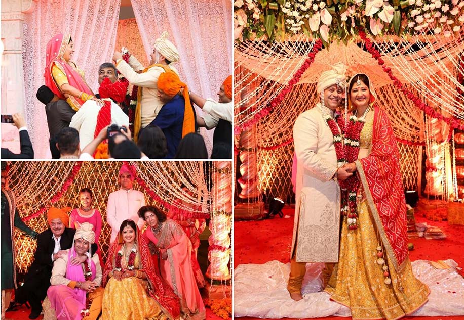 The regal ‘mandap‘ was adorned with lattice of blooms strewn across the pillars and also forming a splendid canopy, profusion of floral arrangements in the front and carefully arranged spotlights to bring out the highlights of the setup. Puneet made his grand entry in a traditional horse-drawn carriage that was festooned with bright orange marigold blooms. Even his ‘baraat’ wore orange ‘safas’ and looked nicely coordinated.