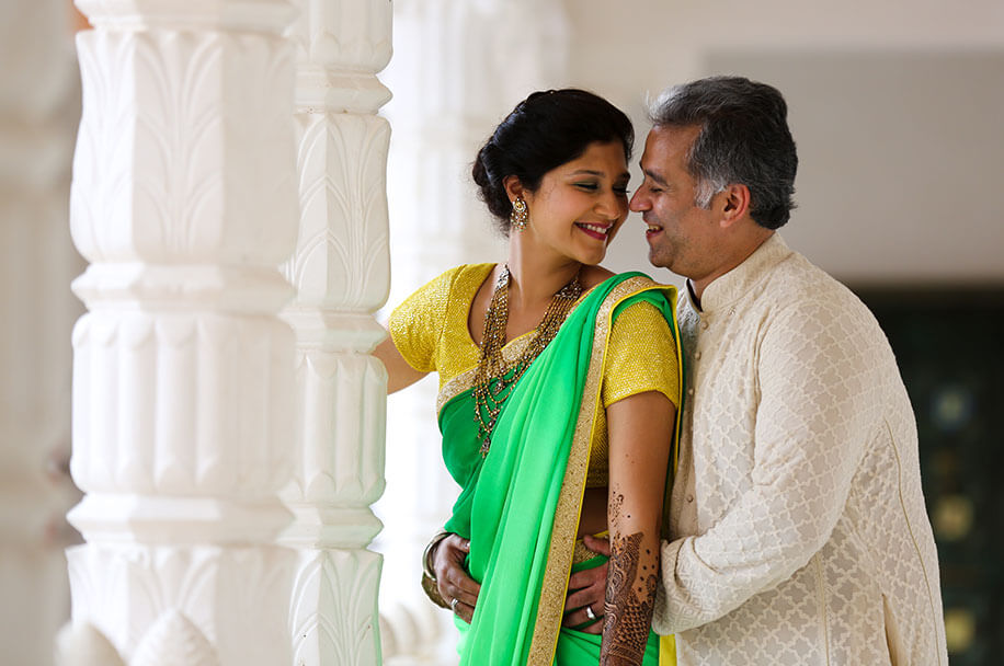 “Puneet surprised me with a heart-stopping proposal and a beautiful infinity band at a New Year’s Eve party.”