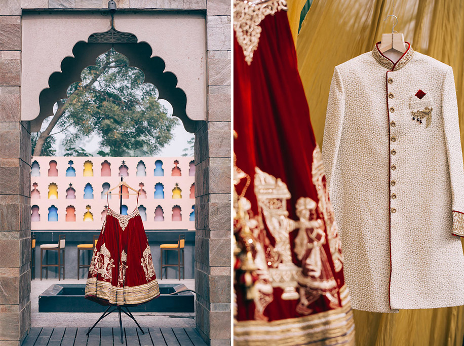 Bridal Trousseau: Archana Kochhar (Sangeet & Wedding), Kalki Fashions (Pool Party & Cocktail), Yoshita Couture (Reception)