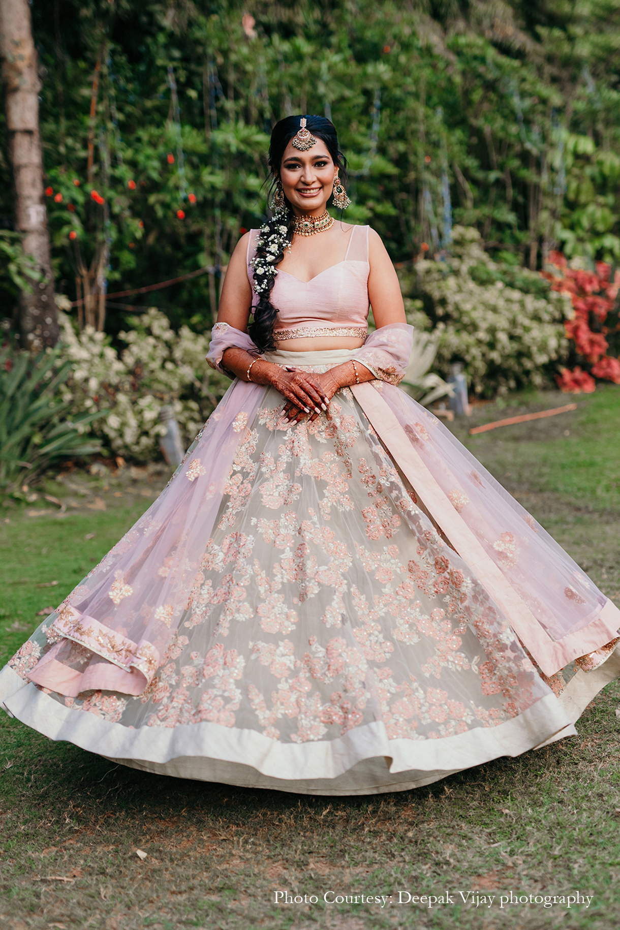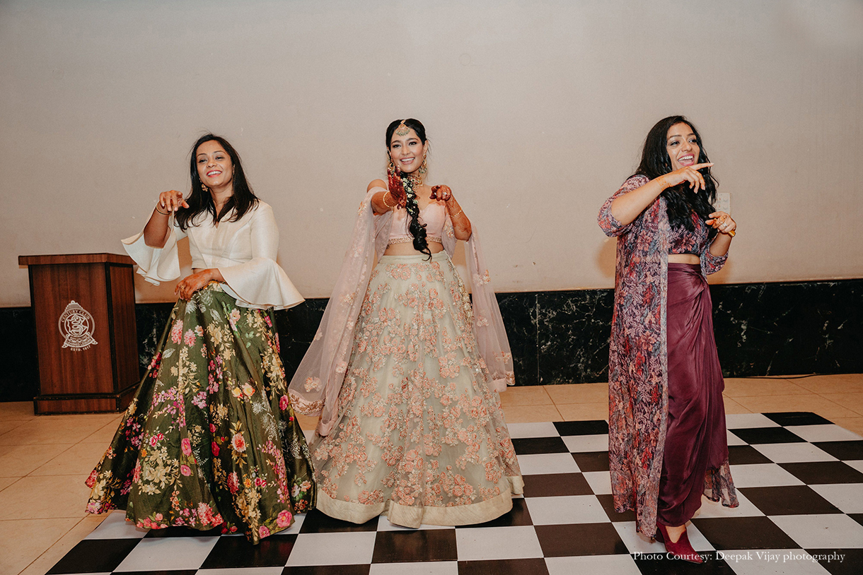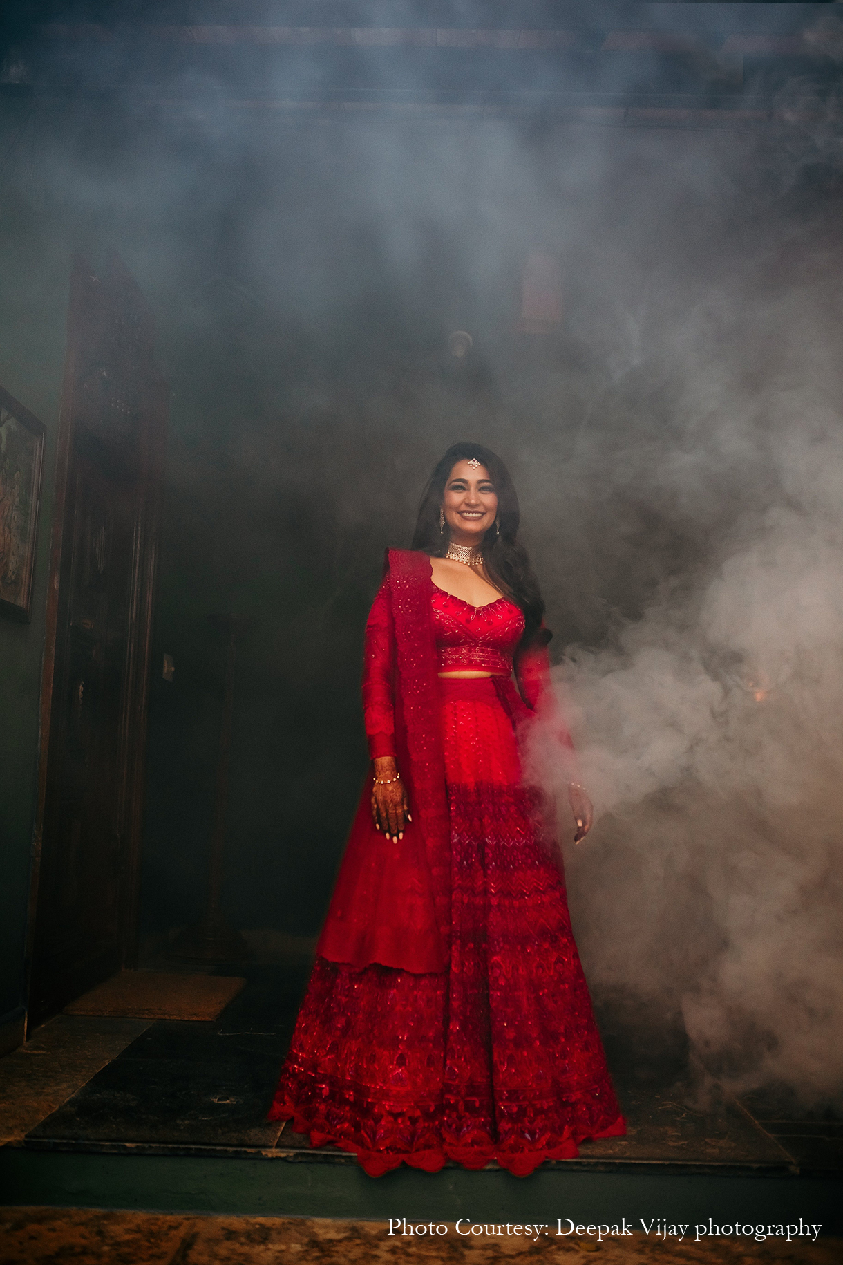 Bride’s Outfits: Shyamal and Bhumika (Mehndi and Cocktail), Tulsi Silks (Wedding), Jade by MK (Reception)