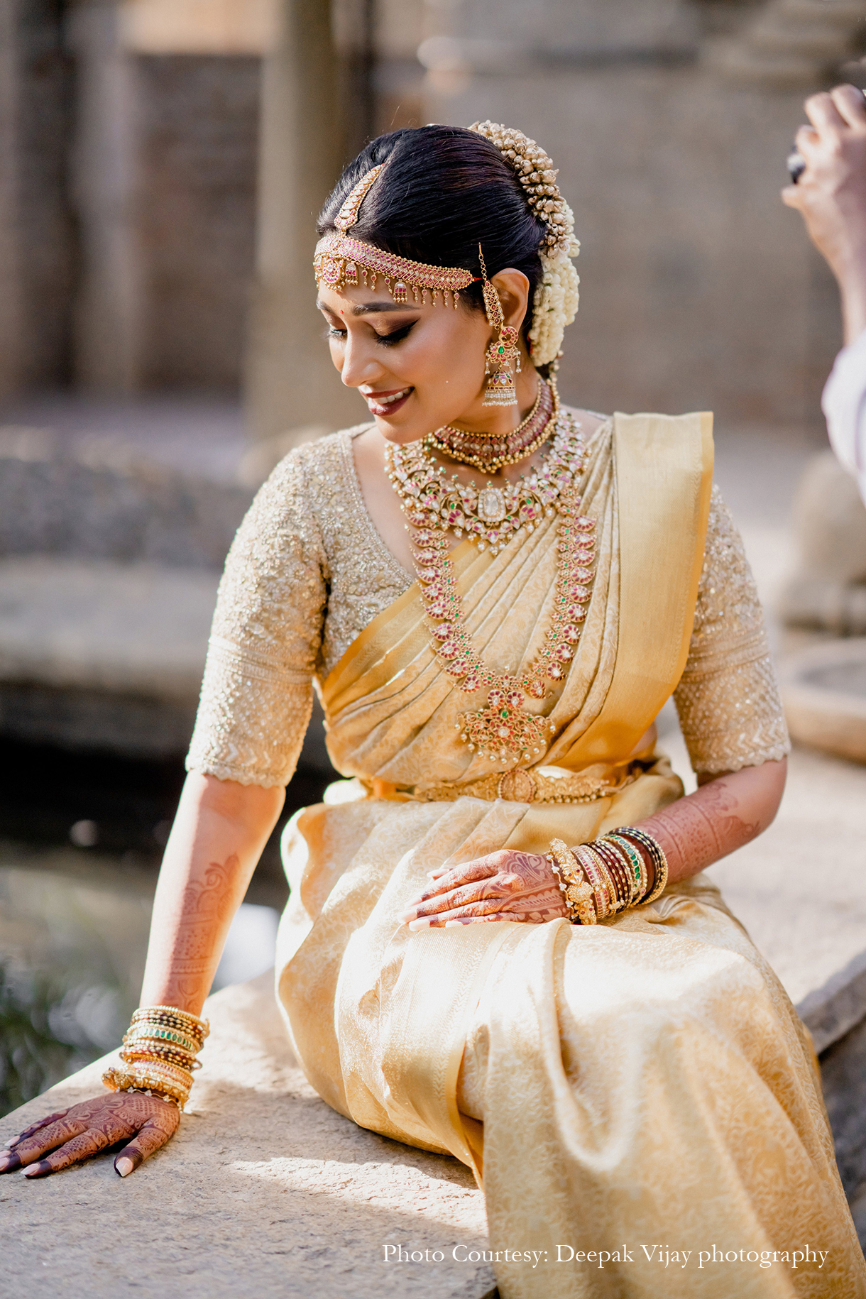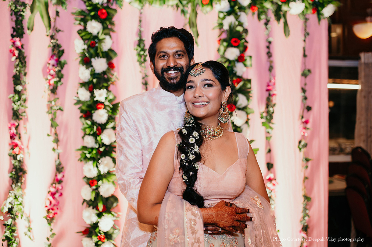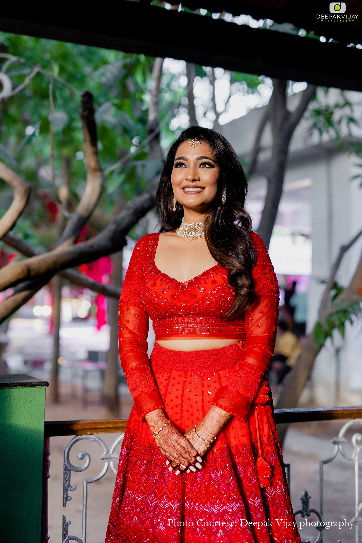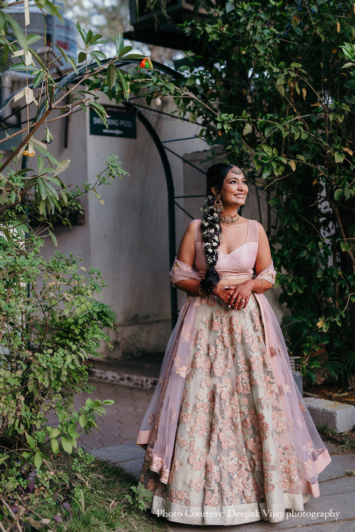 Bride’s Outfits: Shyamal and Bhumika (Mehndi and Cocktail), Tulsi Silks (Wedding), Jade by MK (Reception)