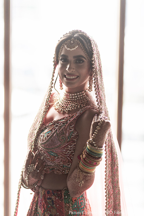 Monisha and Nikhil were wed in a traditional Indian ceremony hosted at The Great Hall of the same hotel. In a beautiful multi-colored sleeveless bridal lehenga by Bharti & Ashna, Monisha looked every bit the radiant Indian bride.