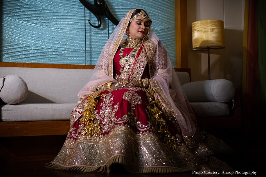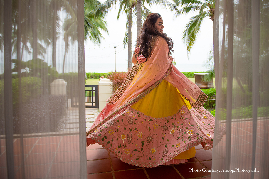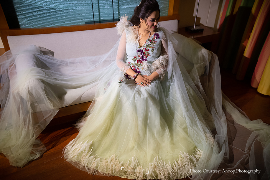 Bride’s Outfits: Manish Malhotra (Engagement, Wedding), Aza by Divya Reddy (Holud), Anita Dongre (Sangeet), Falguni Shane Peacock (Reception)