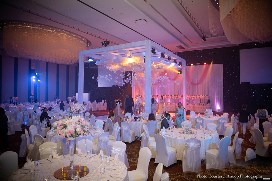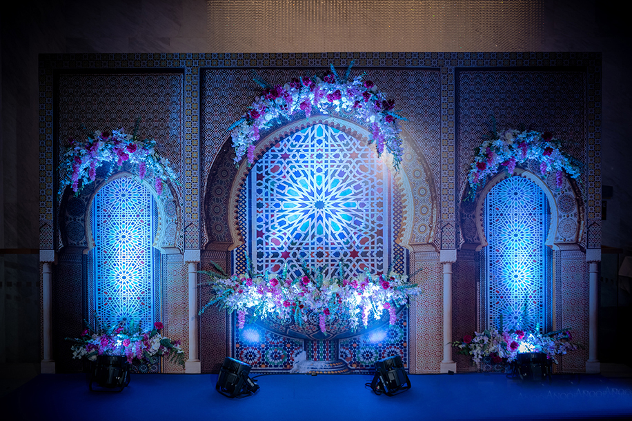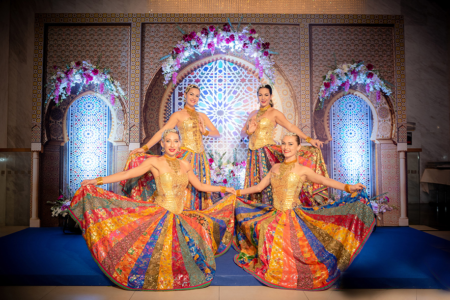 The nikaah ceremony was followed by a grand reception held at the Sheraton Hua Hin Ballroom. The soiree had a stunning decor setup complete with flowy drapes, floral arrangements and glass embellishments. I Do Etc. ensured that the reception was an enjoyable event for the guests with special dancers putting up spectacular dance and trapeze performances for them.
