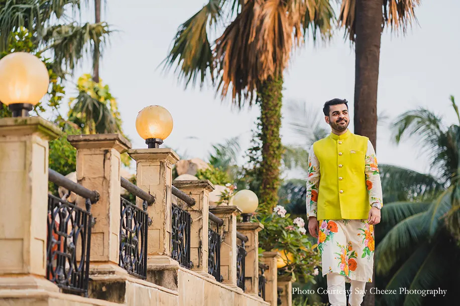 The bride shares, “We were brought together by fate not once, but twice! The first time we met was on a flight on our way to Goa for our friends’ pre-wedding celebrations. He was on team bride while I was part of team groom, and we developed an instant connection that we continued to pursue even after we returned to Mumbai. We stayed in touch and over time became the best of friends. Little did we know that while we were going about our lives as good friends, our parents would be introduced to each other by a mutual friend suggesting our match in marriage. Things just fell into place after that.”