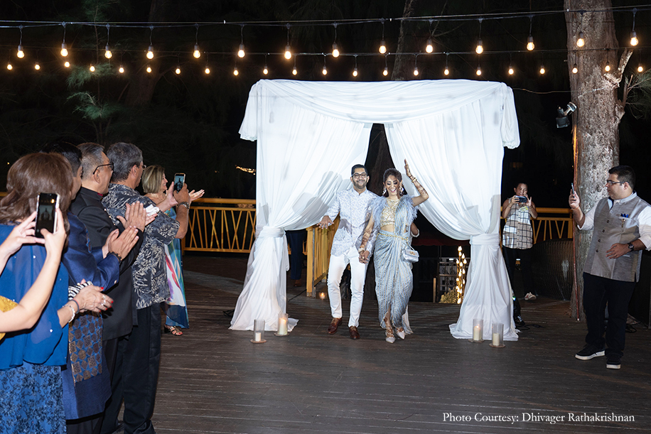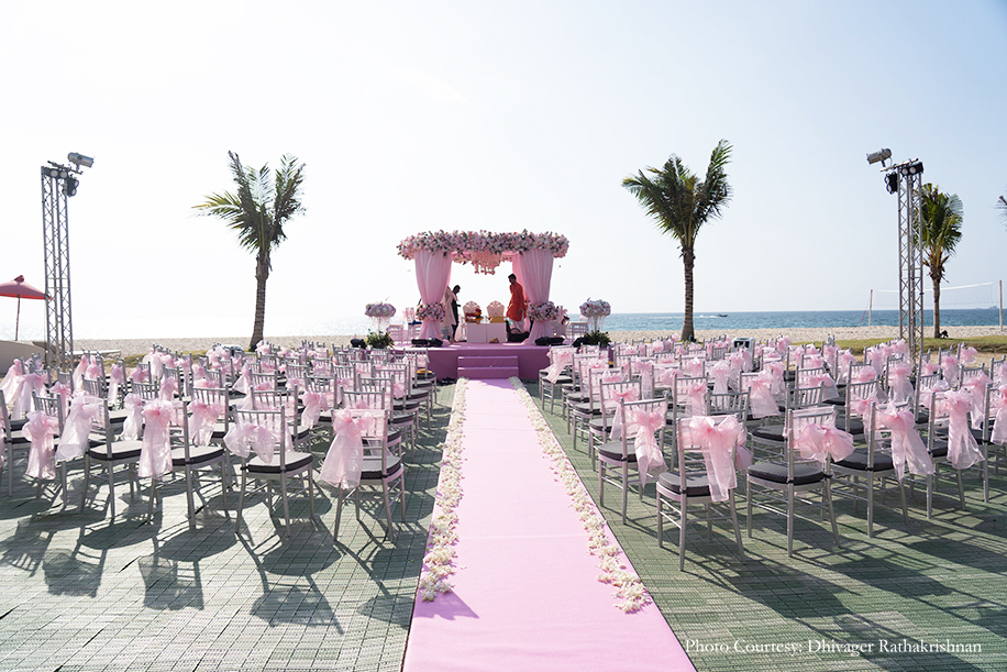 The planning of their beach wedding was entrusted to the amazing duo of Rani and Harry of Revel Events, who were also responsible for the stunning visuals. Natasha shares, “Right from the beginning, Rani and Harry were on top of absolutely every aspect of the planning process, which spanned across an entire year! From coming up with decor ideas and props, to managing the budget and costs, they were with us at every step to give us the wedding of our dreams. We are so thankful to have had them, and they’re now like elder siblings to us!”