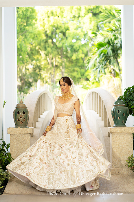 This bride teamed her customized ‘love-story’ lehenga with two exquisite blouses for her wedding and her reception.