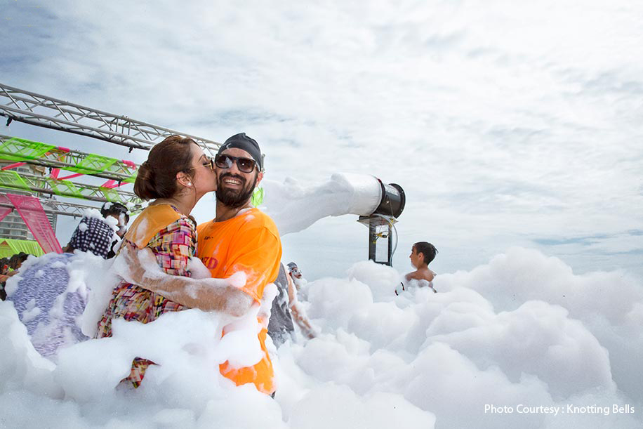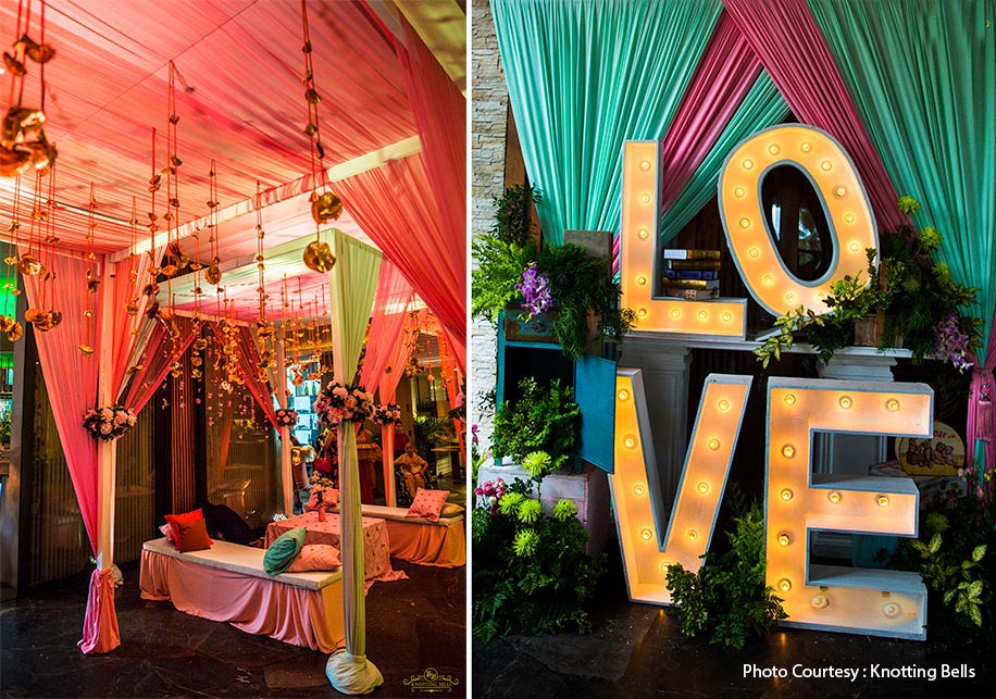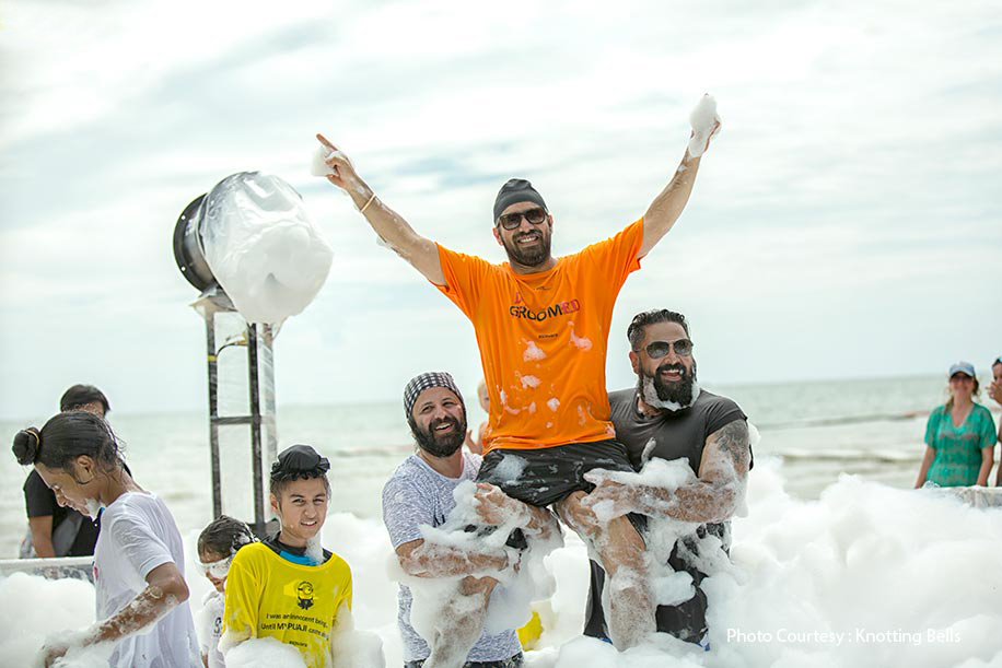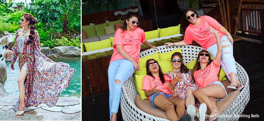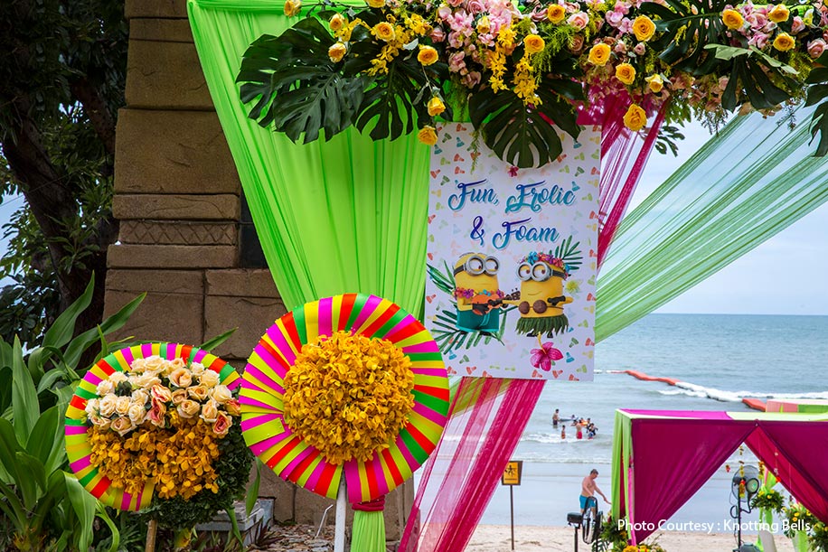 “‘Fun Frolic and Foam’ was the theme for this party that took place by the beach. I entered the venue on a ski with my brothers surrounding me, and Karan entered in the same manner. The vibe for this event was rather casual, and the focus was on just letting loose and having fun, and we made use of happy pop colors to do up the venue. My bridesmaids wore pink t-shirts that read “My friend got a husband and all I got was this t-shirt”. We thought it was a quirky addition and all of the girls loved wearing them.”