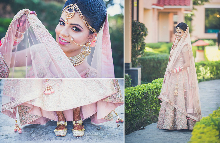“For my makeup, I once again researched options on WeddingSutra, Instagram, and Facebook. I chose Kangana Kochhar and touched base with her from the US. I briefed her about my wedding events and the looks I wanted. Kangana was very friendly on the phone. Initially, I was worried about what to expect as I have never tried her before. However, I met her in New Delhi and we finalized the look for every event. At destination weddings, it is very difficult to find time to change makeup between events, but Kangana managed to squeeze out time to give me the appropriate look for each event.”