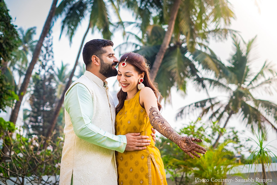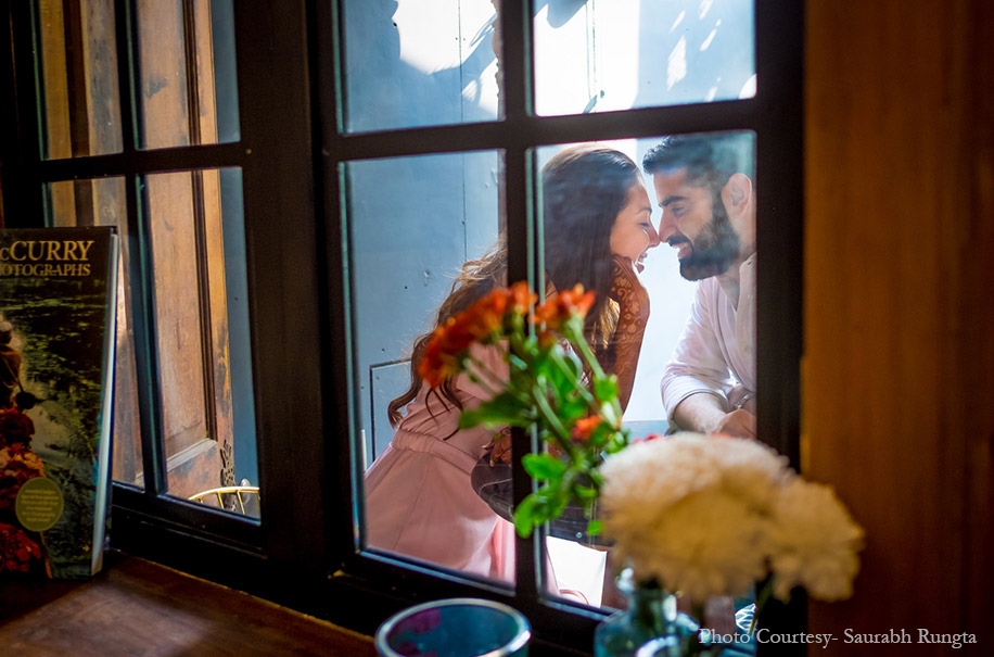 “I work as a celebrity fashion and costume stylist. Sharan is a sport enthusiast working at Sony Picture Networks. We met 6 years ago at what was a first professional stint for both of us. I was the new girl and he was the guy-next-door at a talent agency in Mumbai. He had the best smile! About 3 months into working in the same office, one Sunday afternoon, over wine and a margherita pizza, we realized something was different.