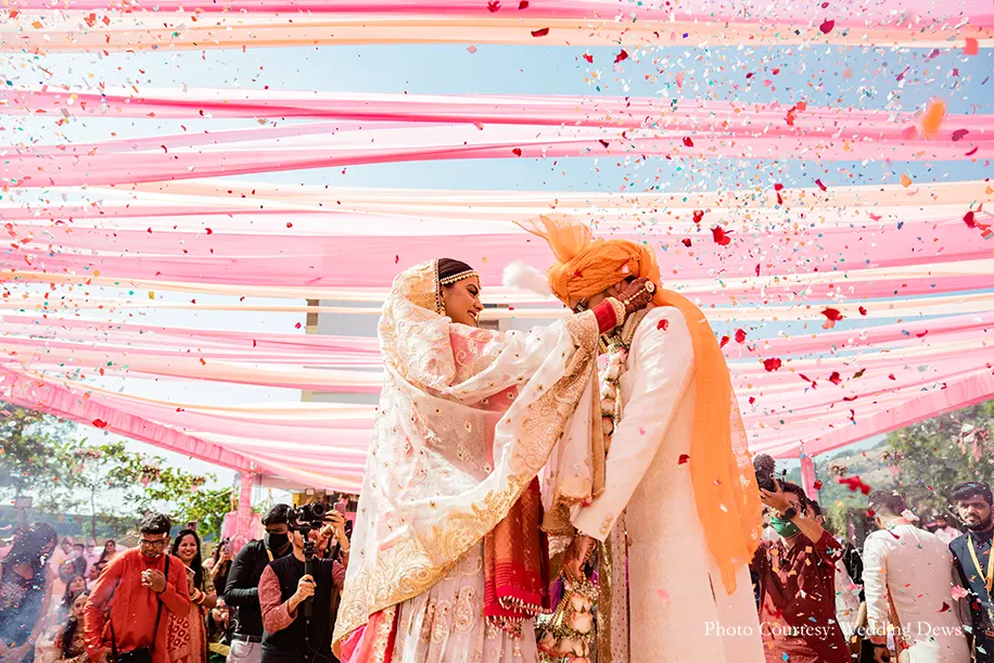 Close-knit, colorful, and traditional, Nehal Jain and Priyank Parmar’s wedding radiated joy and exuberance. Planned by WeddingSutra Favorite – Mokshiva Entertainment who meticulously looked into every detail to make the duo’s vision come true, this serene wedding was a treat for the eyes with its artful use of hues and unique themes.