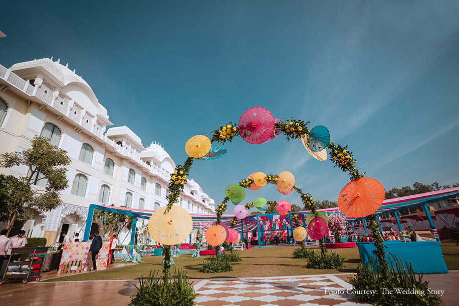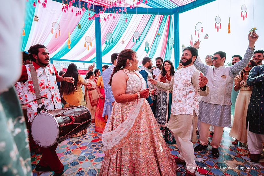 Following the close-knit celebrations was a grand mehndi party for all the guests. Nidhi shares, “The color palette for this event followed a pastel theme with sheer pastel canopies sheltering us from the sun. Additionally, we also had numerous games and a tarot card reader to keep everyone entertained. Singer Mansheel Gujral entertained the gathering with her beautiful melodies.”