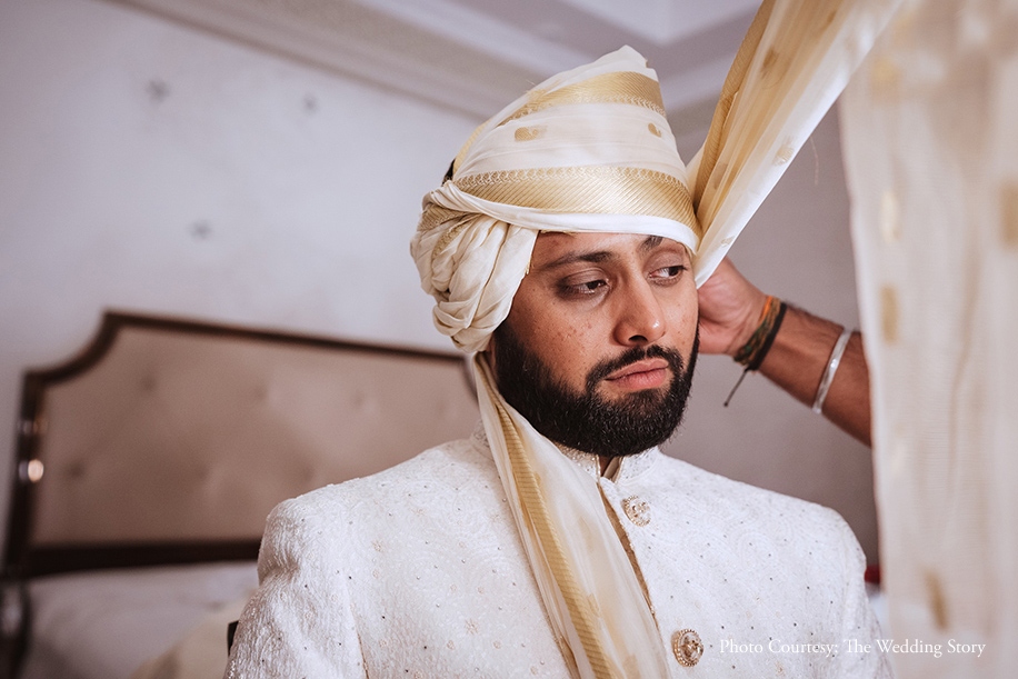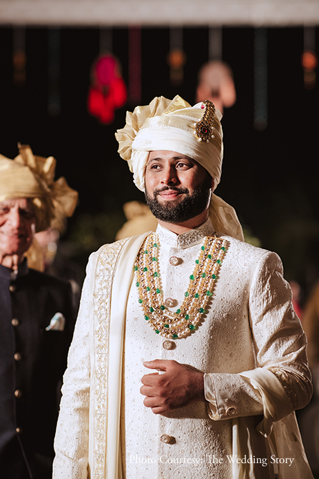 “We tied the knot on the Sundarban Lawns of the JW Marriott Jaipur Resort & Spa and decided to go for a classy decor. Elements like fresh tuberoses, bells, and classic lacework archways adorned our mandap. Since it was an open-air event, we made sure that the guests had plenty of seating options available with lights flooding the entire lawn, giving them an unhindered view of the venue and proceedings.”