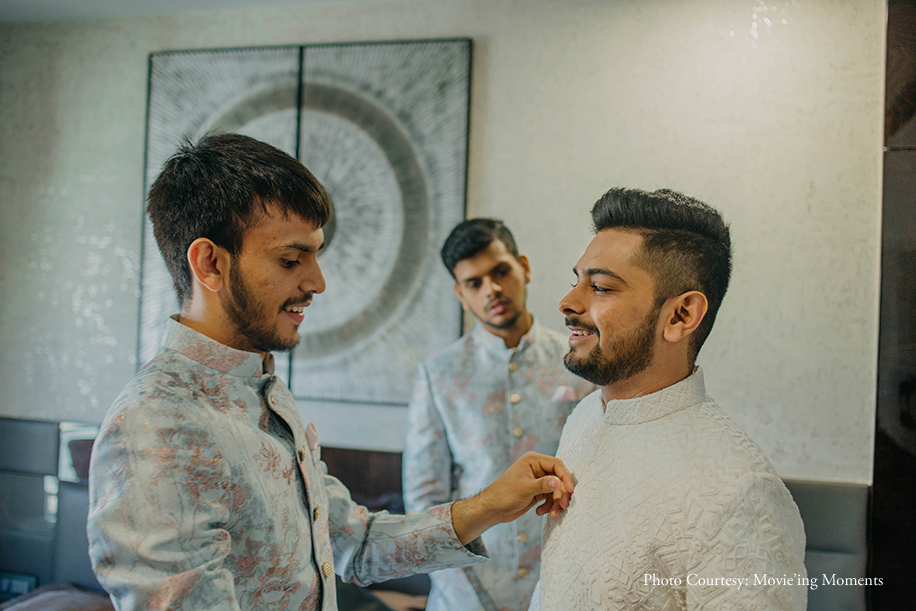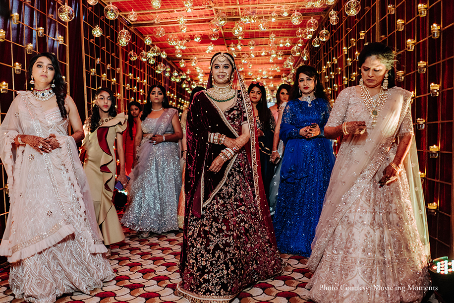 Nidhi and Umang, family friends, whose parents finally managed to successfully get the duo to meet over a planned dinner, instantly hit it off when they met. They recently got married in Mumbai where WeddingSutra Favourite – Swaaha Wedding Management Co. planned their wedding to perfect and WeddingSutra Favourite – Movie’ing Moments captured all the intimate celebrations from their special day.