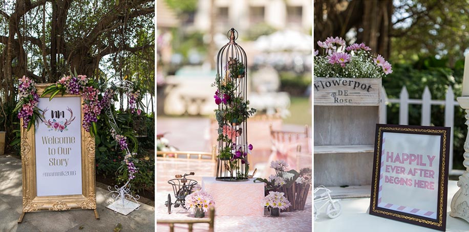 We’d always wanted our wedding to be unique, to stand out in the memories of our guests as a day of joy! On the morning of our big day, we arranged for a nautical themed ‘spa party’ as a prelude to the wedding. The party was held in the garden with a blue and white color theme.