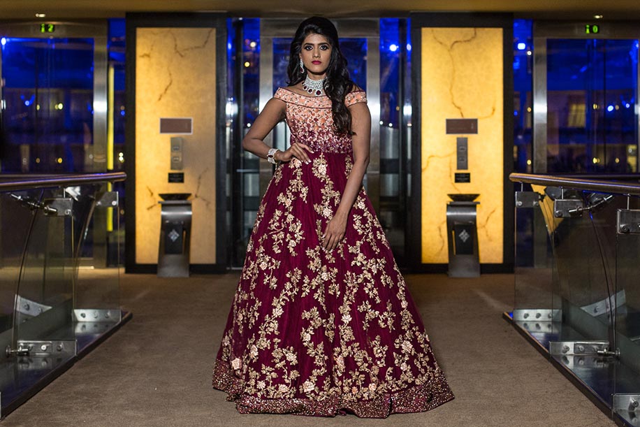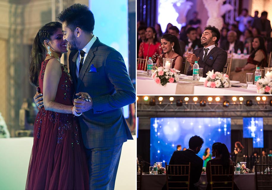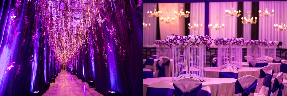 There were some great performances by our friends and family that made the event extra special. The décor was dreamy in shades of purple, with an illuminated entrance, chandeliers and floating candles. I wore a heavily embroidered, off-shoulder deep purple lehenga to complement Mamik’s black bandh gala.