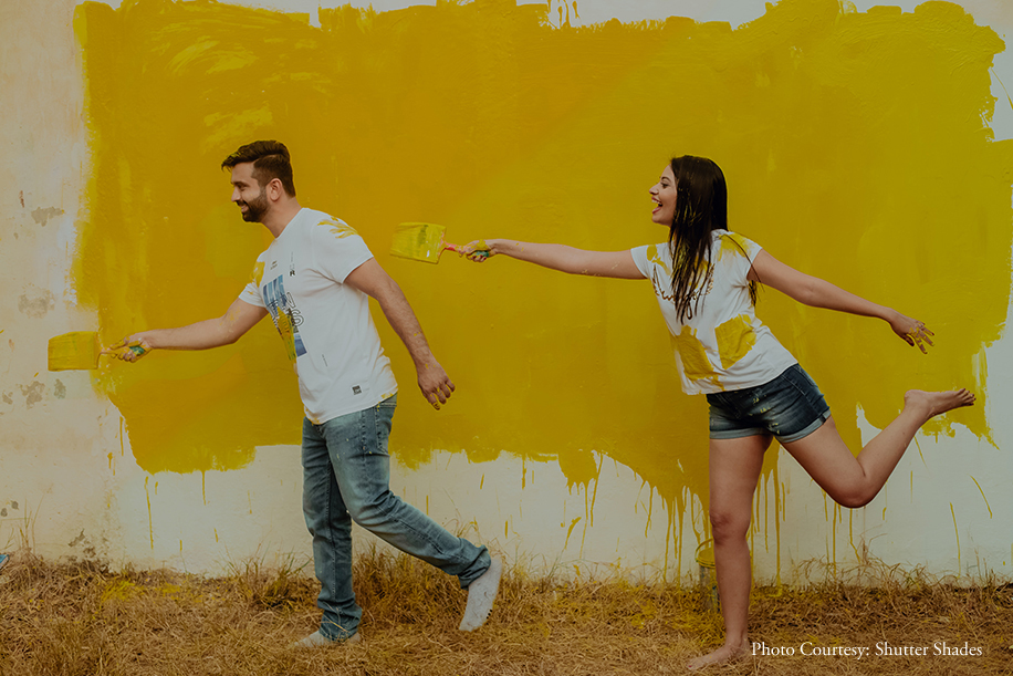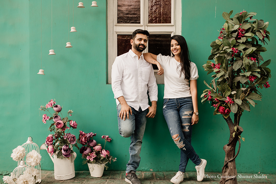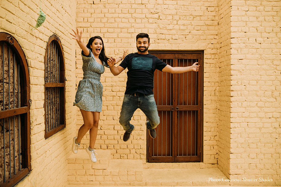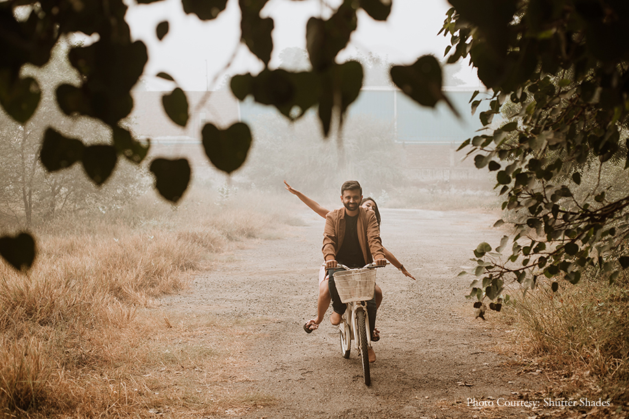 The couple planned a pre-wedding photoshoot at The Perfect Location in Faridabad, Haryana. Their quirky and romantic moments were perfectly captured by Shutter Shades Photography. The photoshoot was held at different sets on the location and the couple chose sets that were vibrant with bright themes. They had fun posing as if they were biking around the place, painting walls, blowing bubbles and dancing around.
